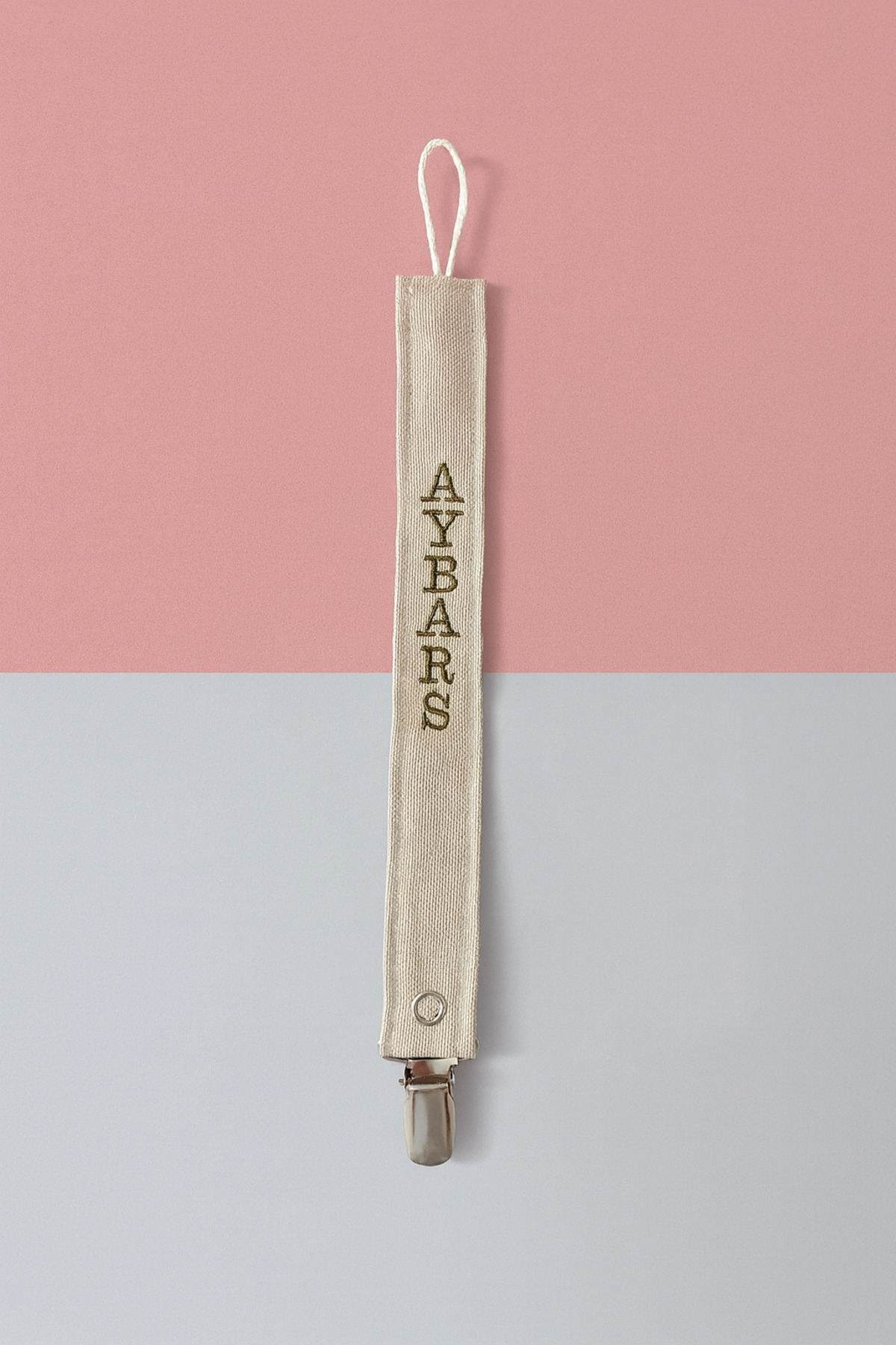 The Cloudish Shop Bebek Pamuk Müslin Fiyonklu emzik askısı ahşap kancalı – Bej Kahve