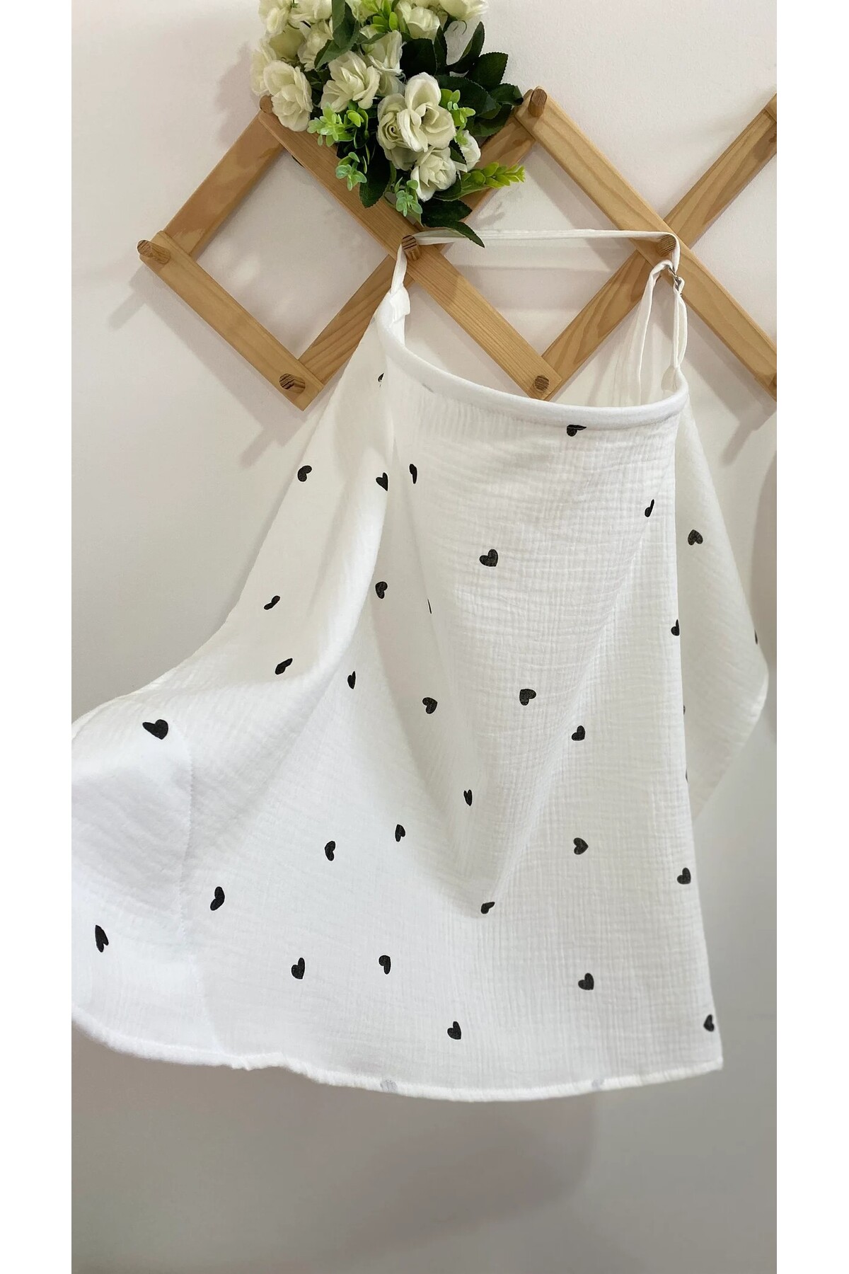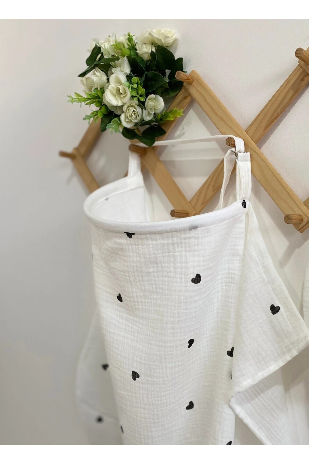 minoshes %100 Pamuklu 2 Katlı Müslin Siyah Kalpli Emzirme Önlüğü Balenli