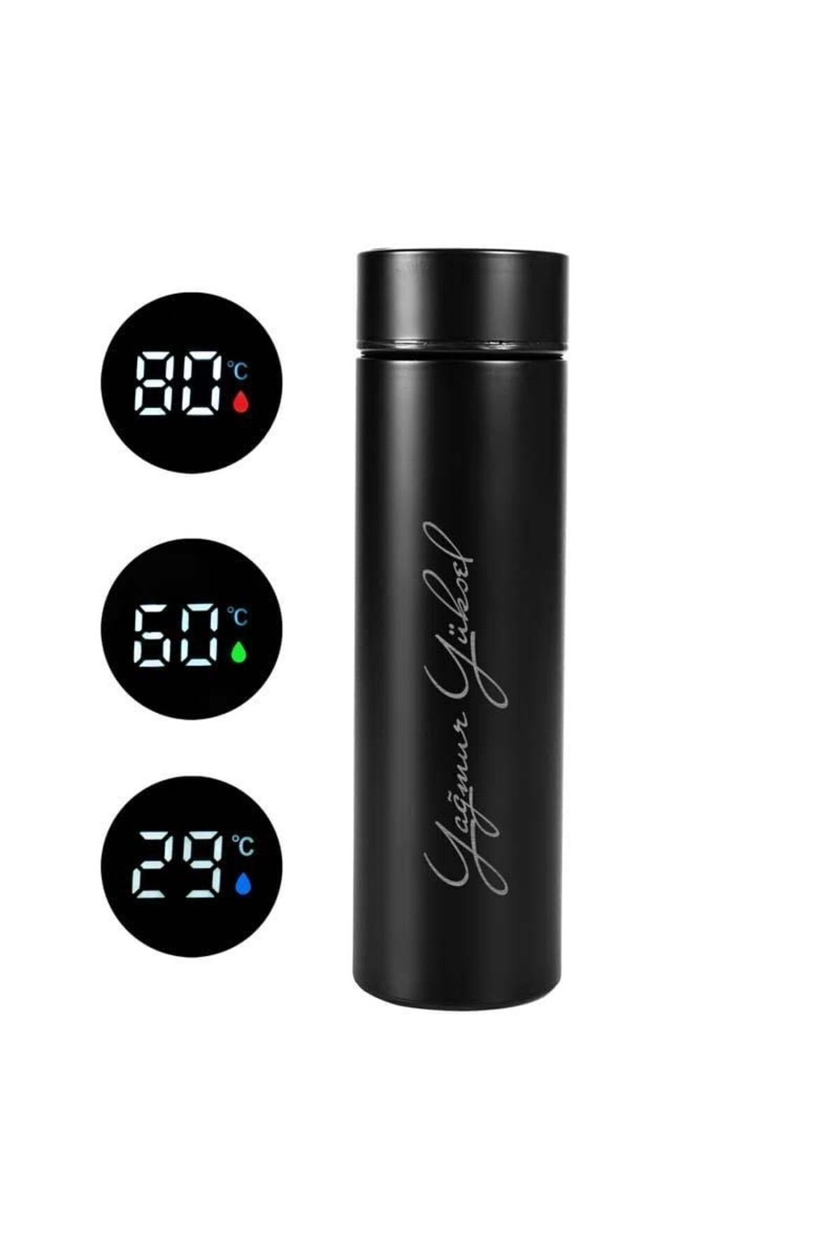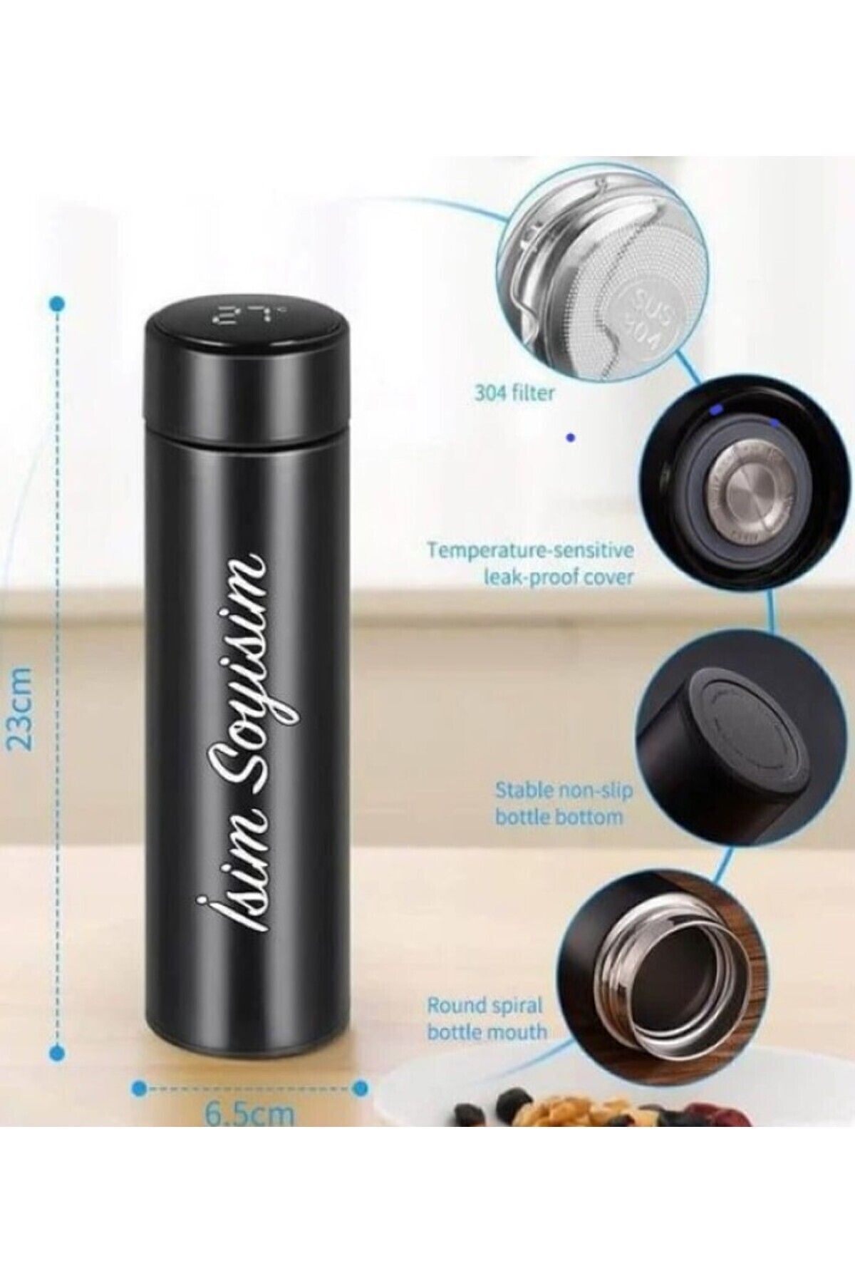 Mio Life Kişiye Özel Siyah Dereceli Çelik Dijital Led Sıcaklık Göstergeli Akıllı Termos Matara 500ml