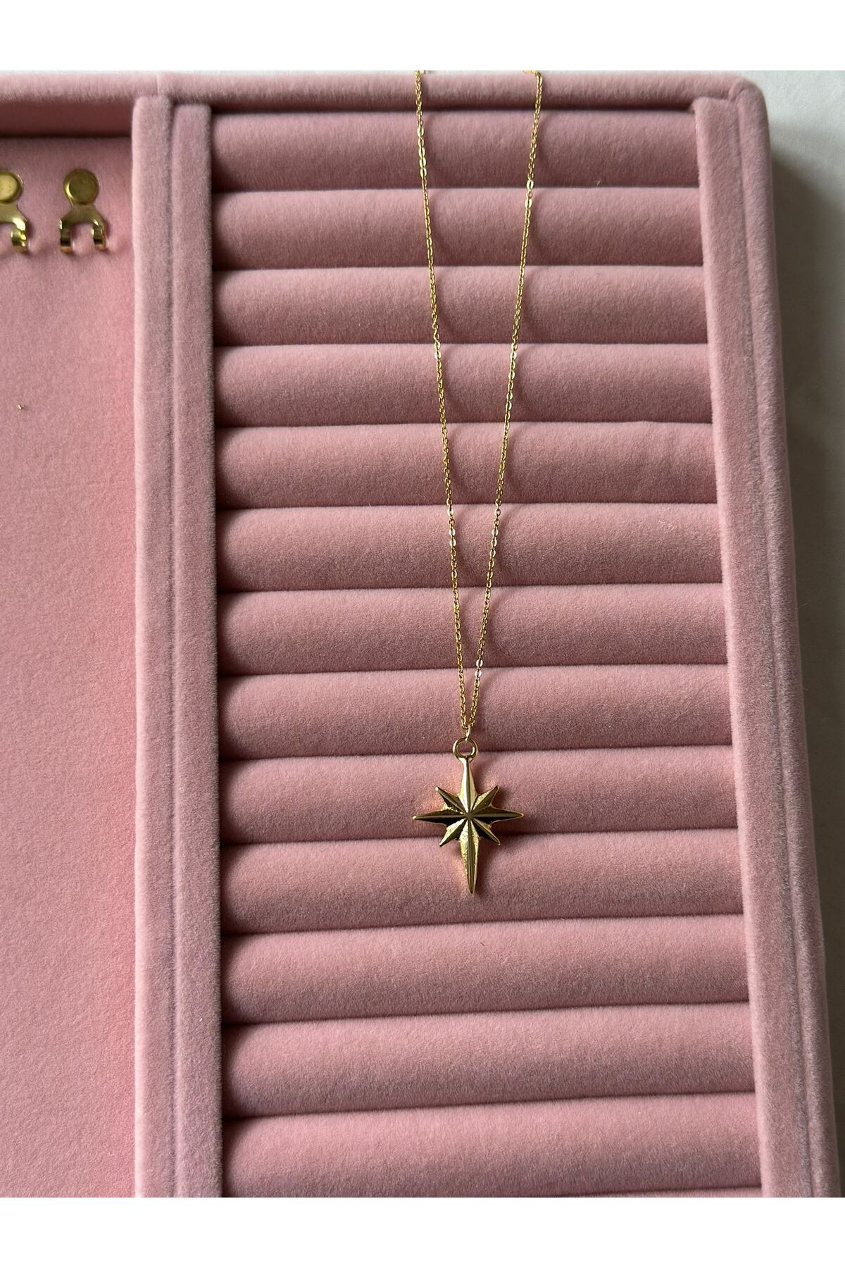 MİOSAPRİVE 14K Altın Kaplama Kuzey Yıldızı Çelik Kolye