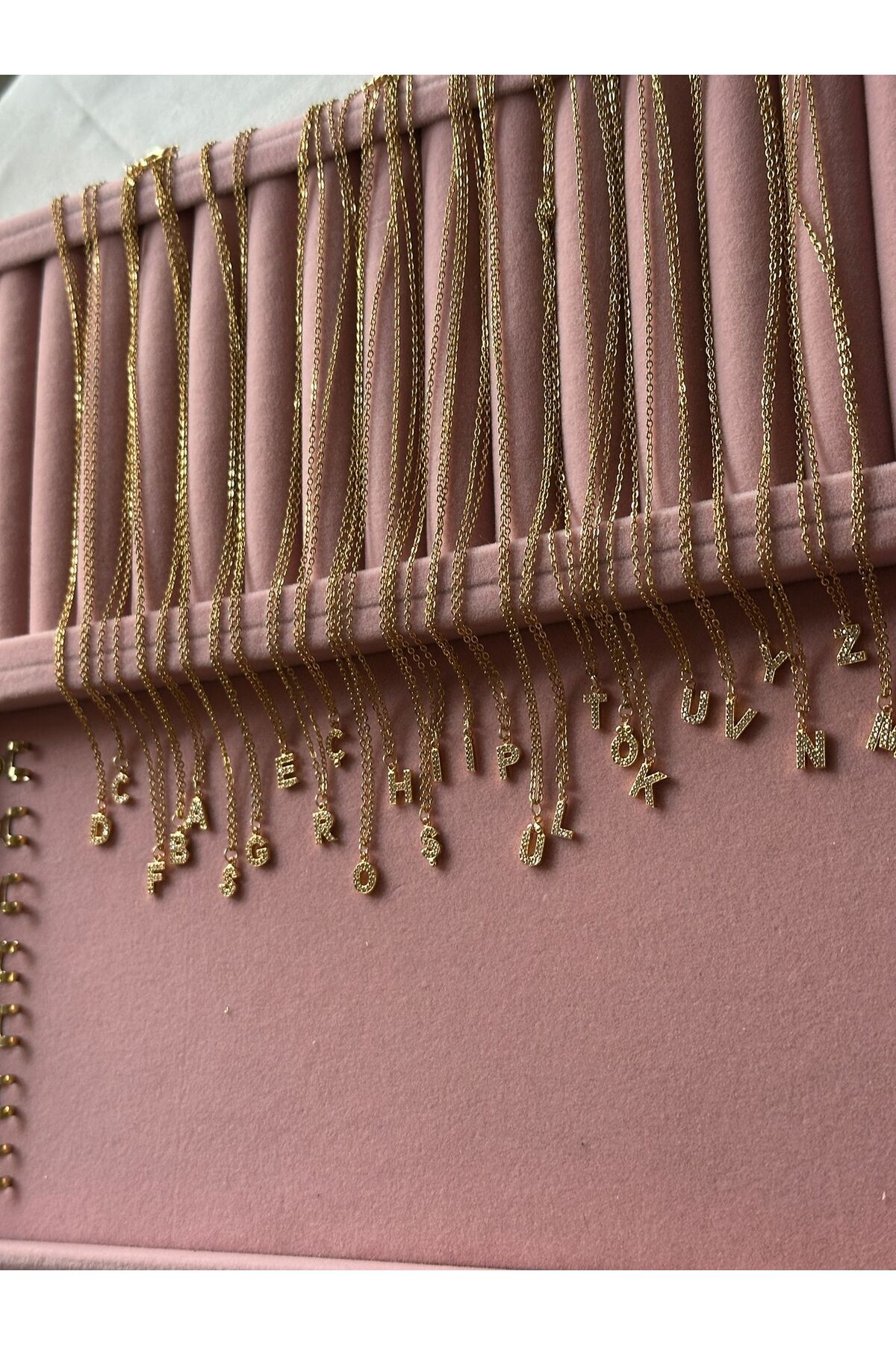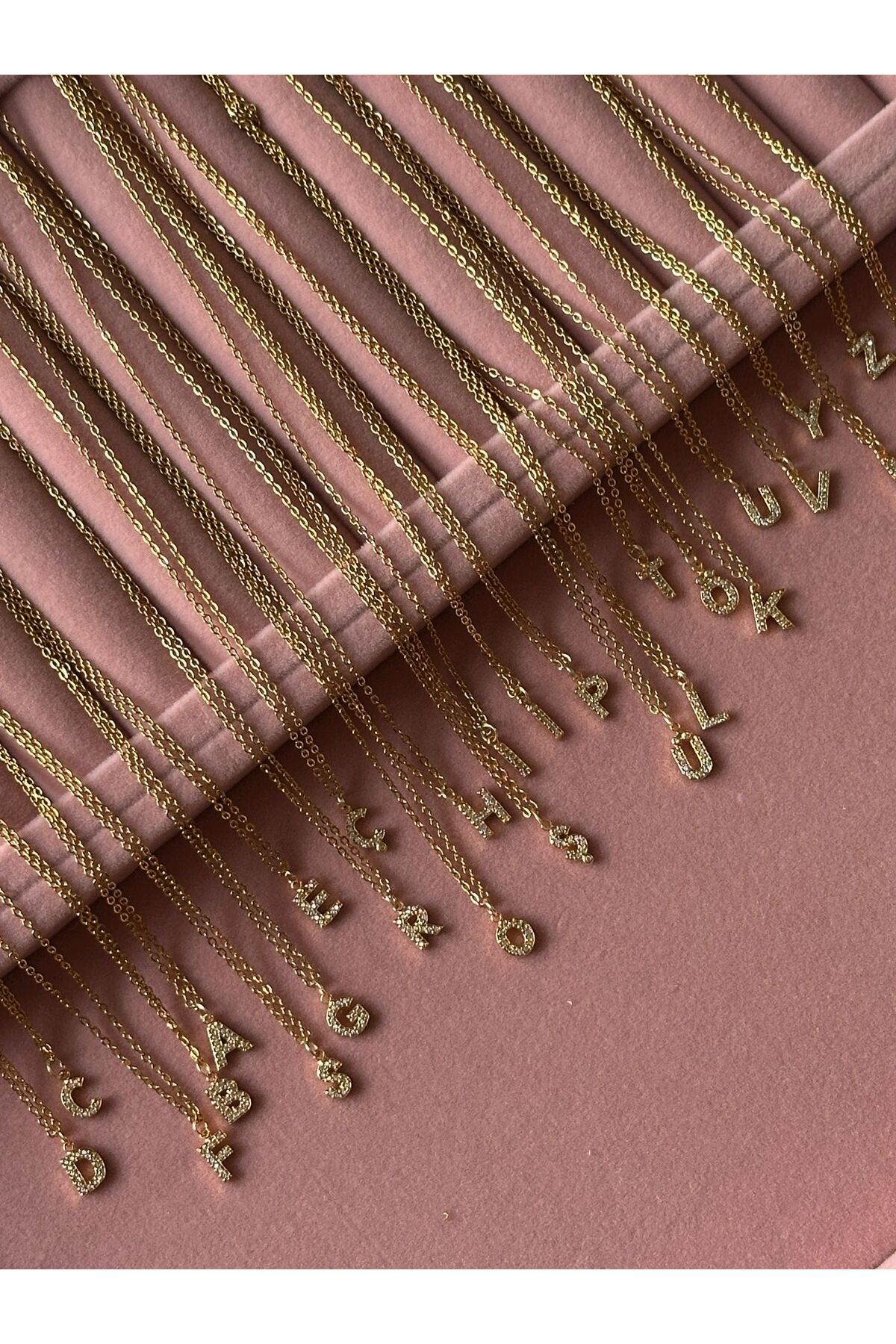 MİOSAPRİVE 316l Kararmaz Çelik Altın Kaplama Zirkon Taşlı Minimal Harf Kolye