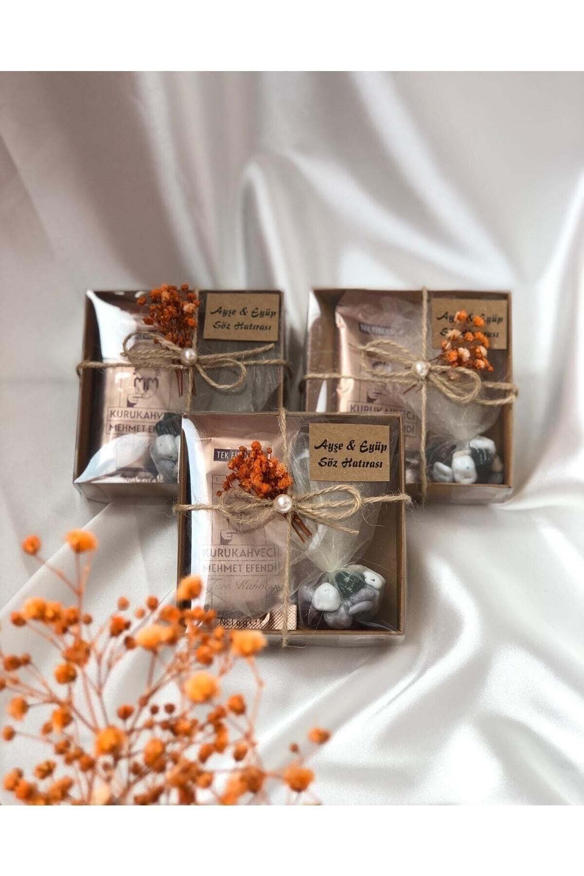 Mirabella Gift Kraft Kutulu Tek Içimlik Kahve Ve Tüllü Badem, Çakıl Taşı Söz Nişan Nikah Şekeri Hediye 10 Adet