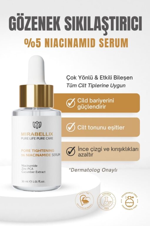 Mirabellix Gözenek Sıkılaştırıcı %5 Niasinamid & Çinko Pca Içeren Aydınlatıcı Ve Yatıştırıcı Serum 30 ml
