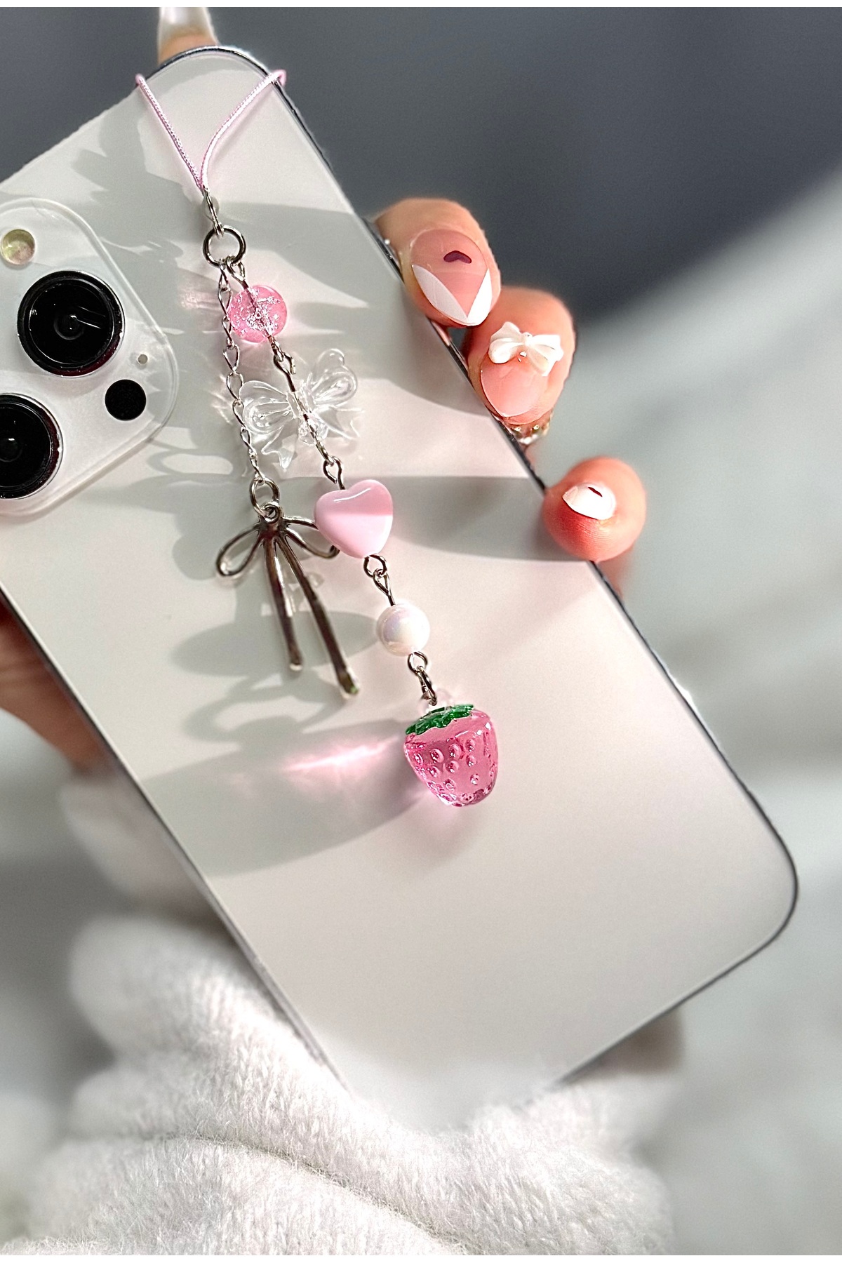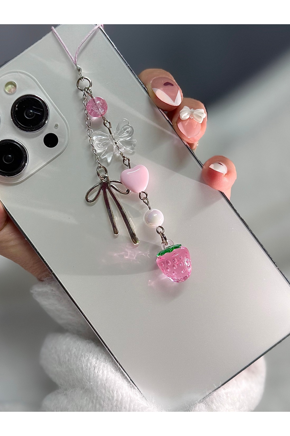 MİRAZ TASARIM Çilek Figürlü Telefon Charmı | Y2K Kawaii Pembe Charm – Estetik Telefon & Çanta Aksesuarı