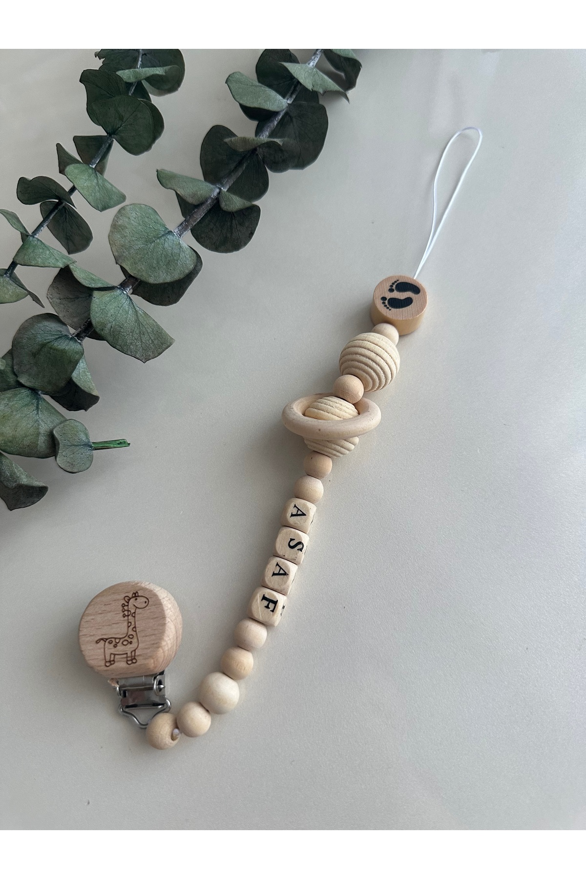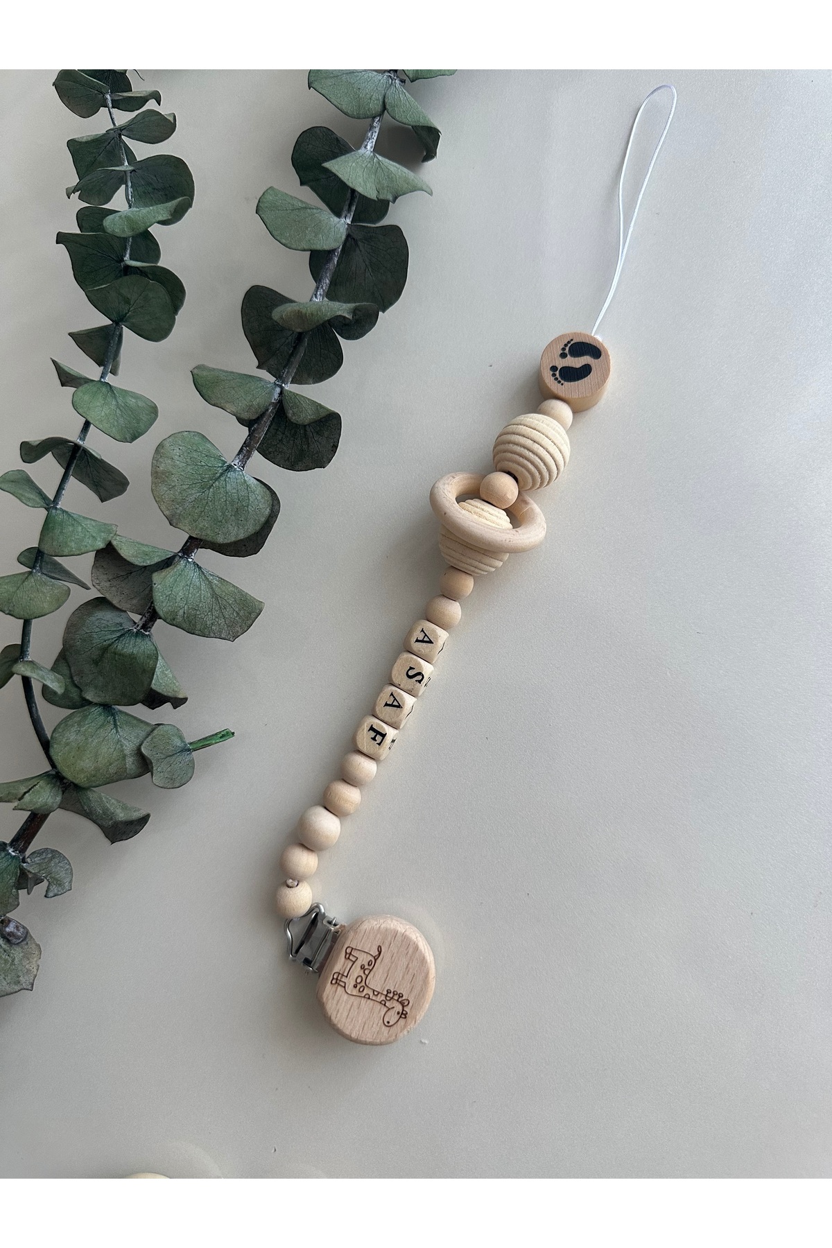 My Kids Room Doğal Ahşap Emzik Zinciri – Isimli Emzik Askısı Ahşap Emzik Zinciri Emzik Tutucu