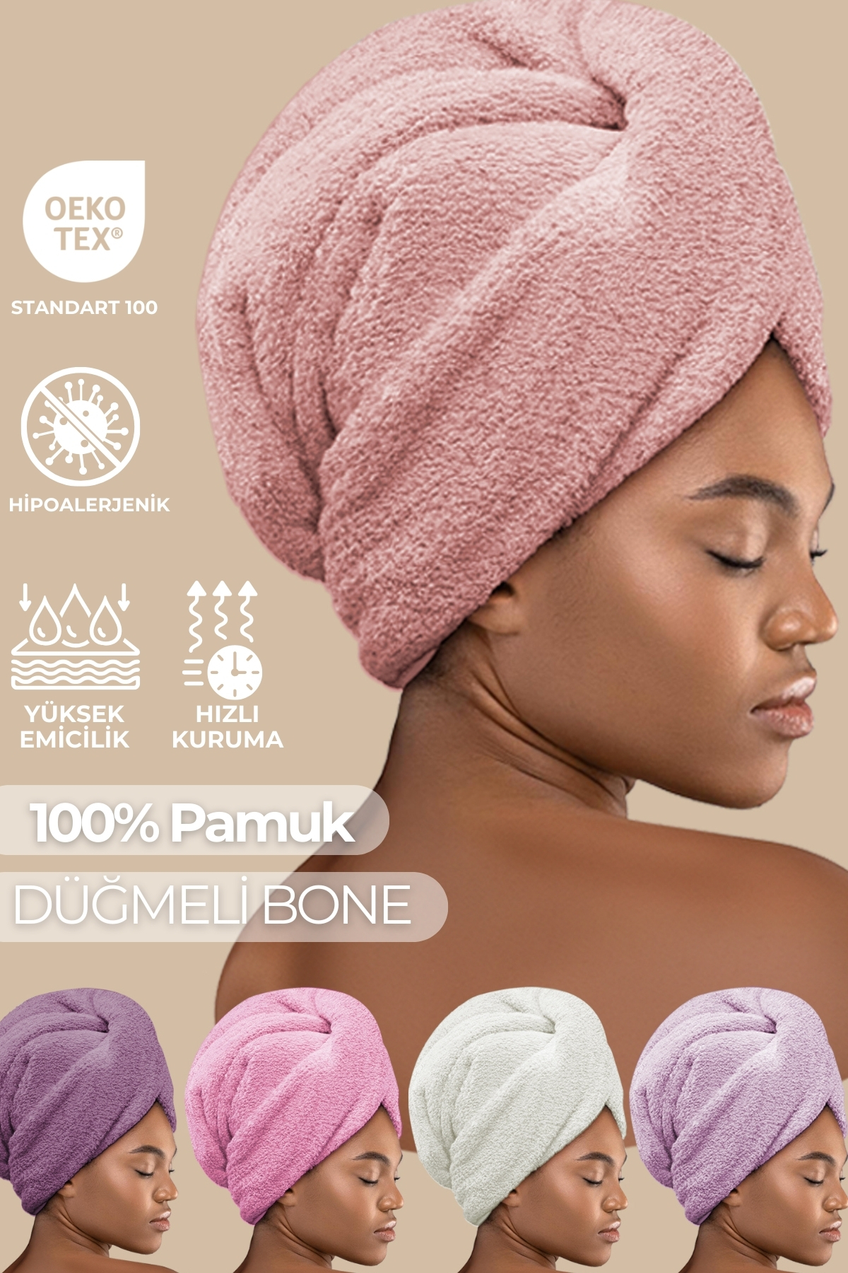 Miss Paris Home Düğme Lastikli Saç Havlusu, Saç Bonesi, Makyaj Bonesi, Yüz Bakım Havlusu, Banyo Sonrası Saç Kurutma