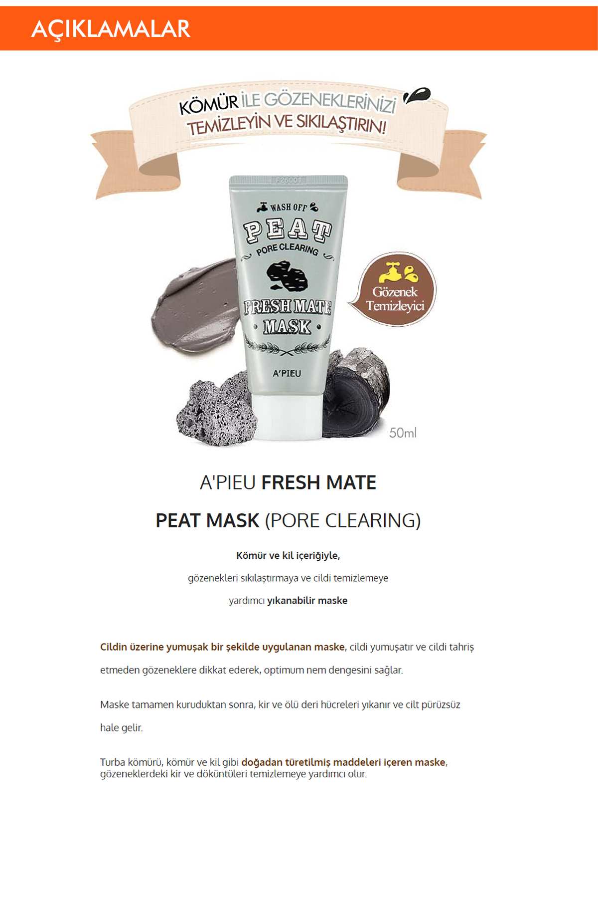 Missha Gözenek Temizleyici Kil ve Kömür Maskesi 50ml A'PIEU Fresh Mate Peat Mask (Pore Clearing) ürününü en uygun fiyata kozmetikara.com sitemizden sipariş verebilirsiniz.
