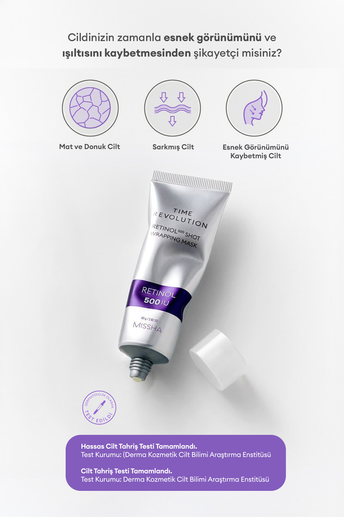 Missha Retinol İçerikli Kırışıklık Karşıtı Soyulabilen Maske Time Revolution Retinol 500 Shot Wrapping Mask ürününü en uygun fiyata kozmetikara.com sitemizden sipariş verebilirsiniz.