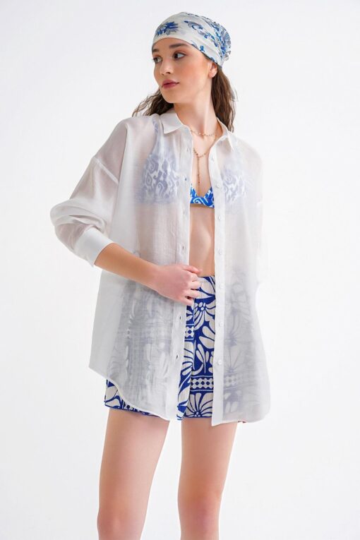 Mixray 4667 Kadın İnce Oversize Modal Gömlek Beyaz