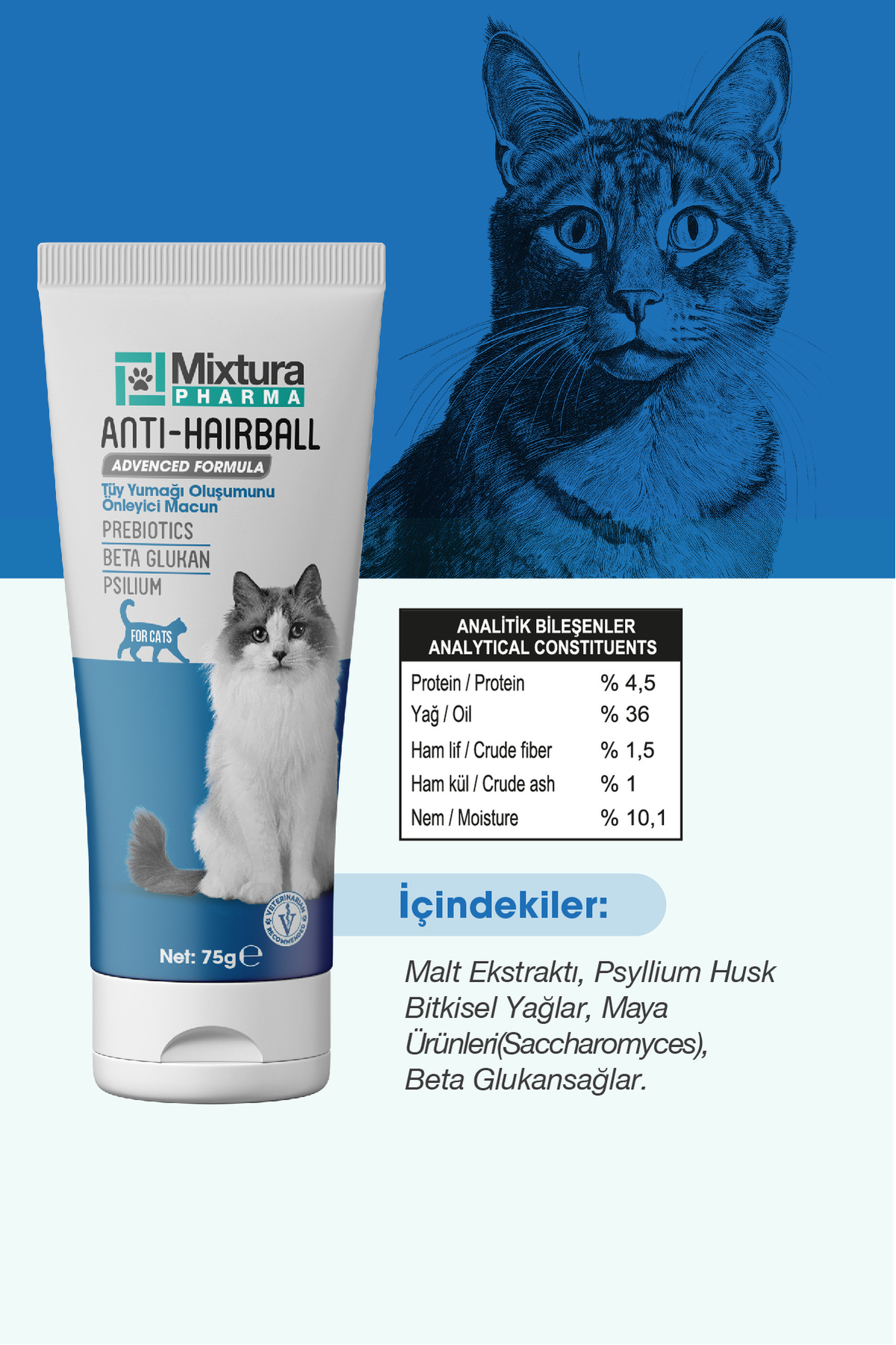 Mixtura Pharma Anti-hairball Kedi Tüy Yumağı Önleyici Malt Macun (TÜY YUMAĞI OLUŞUMUNU ÖNLEYİCİ) ürünü ucuz fiyat, hızlı kargo imkanı ile hemen sitemizden sipariş verin.