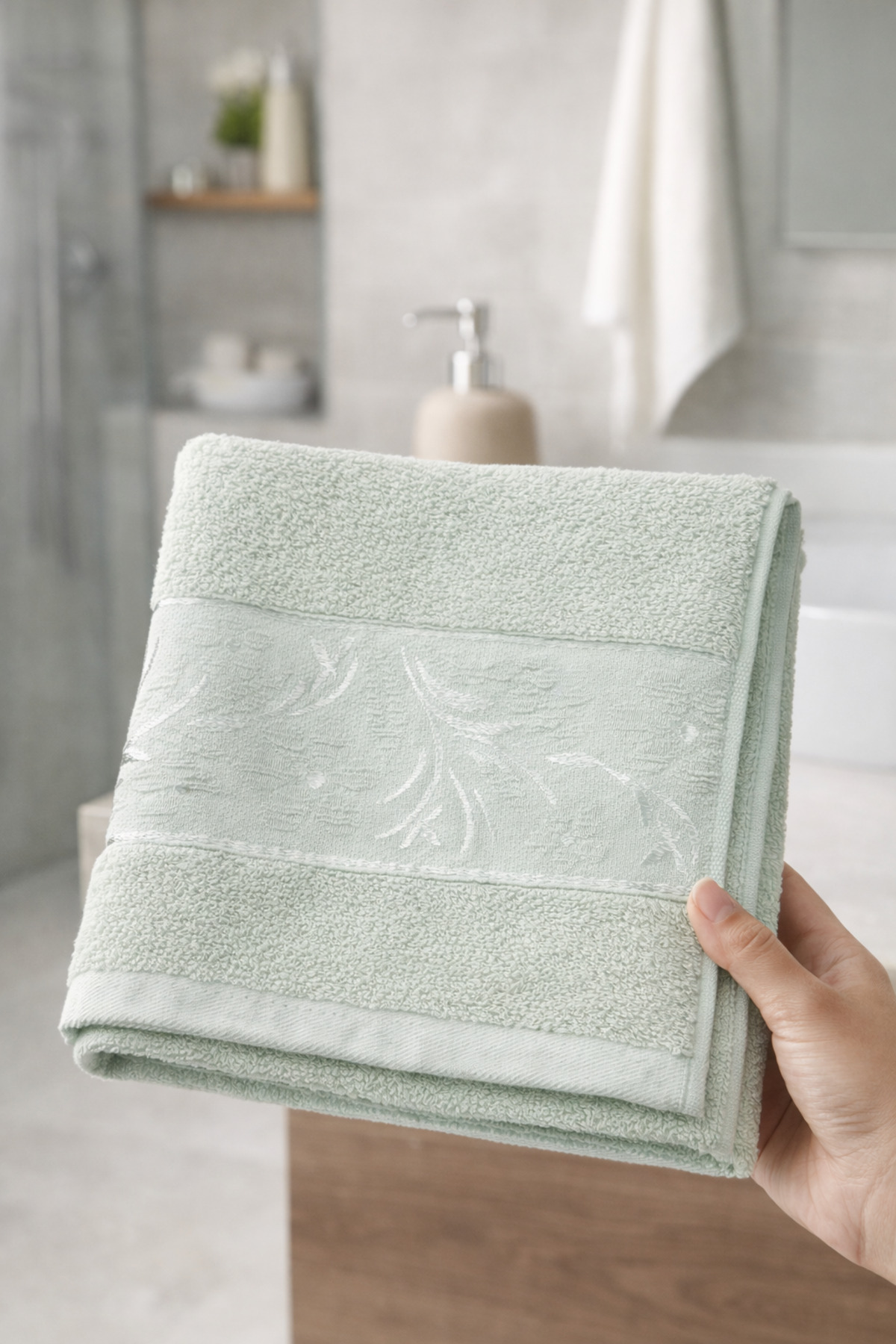 MKYHOME MKY Home 2’li Set Nakışlı Pamuk El & Yüz Havlusu Mint Yeşil 50×90 cm