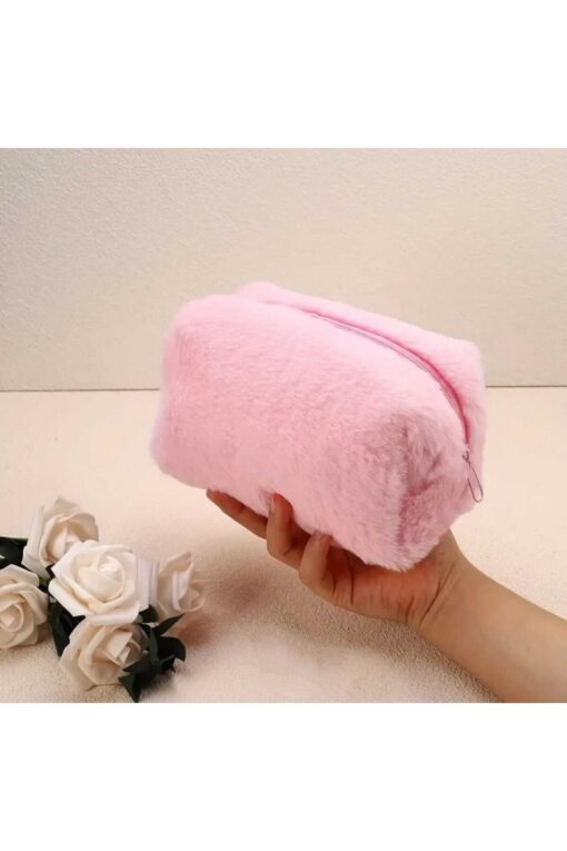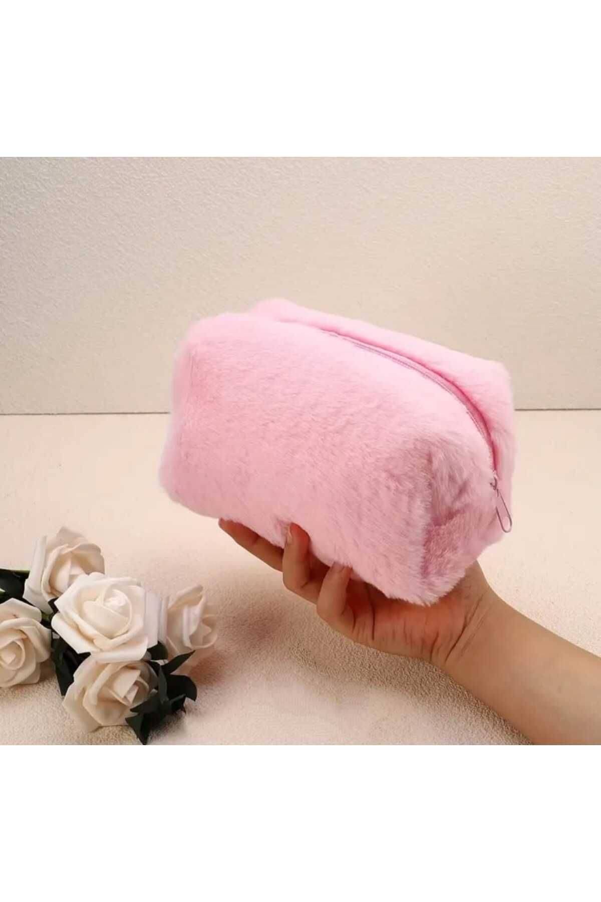 mlio Pembe peluş makyaj çantası seyahat ve kozmetik çantası en ucuz fiyata kozmetikara.com sitemizden sipariş verebilirsiniz.