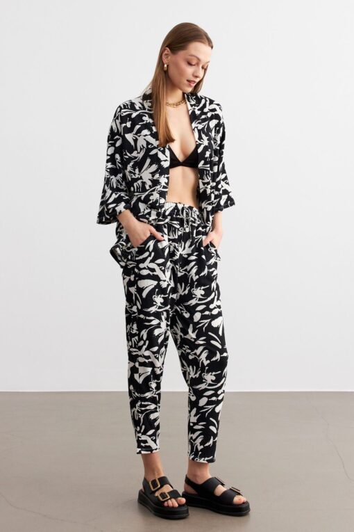 MODAGEN Kadın Siyah-Beyaz Desenli Kimono Gömlek Pantolon Takım en ucuz fiyata kozmetikara.com sitemizden sipariş verebilirsiniz.
