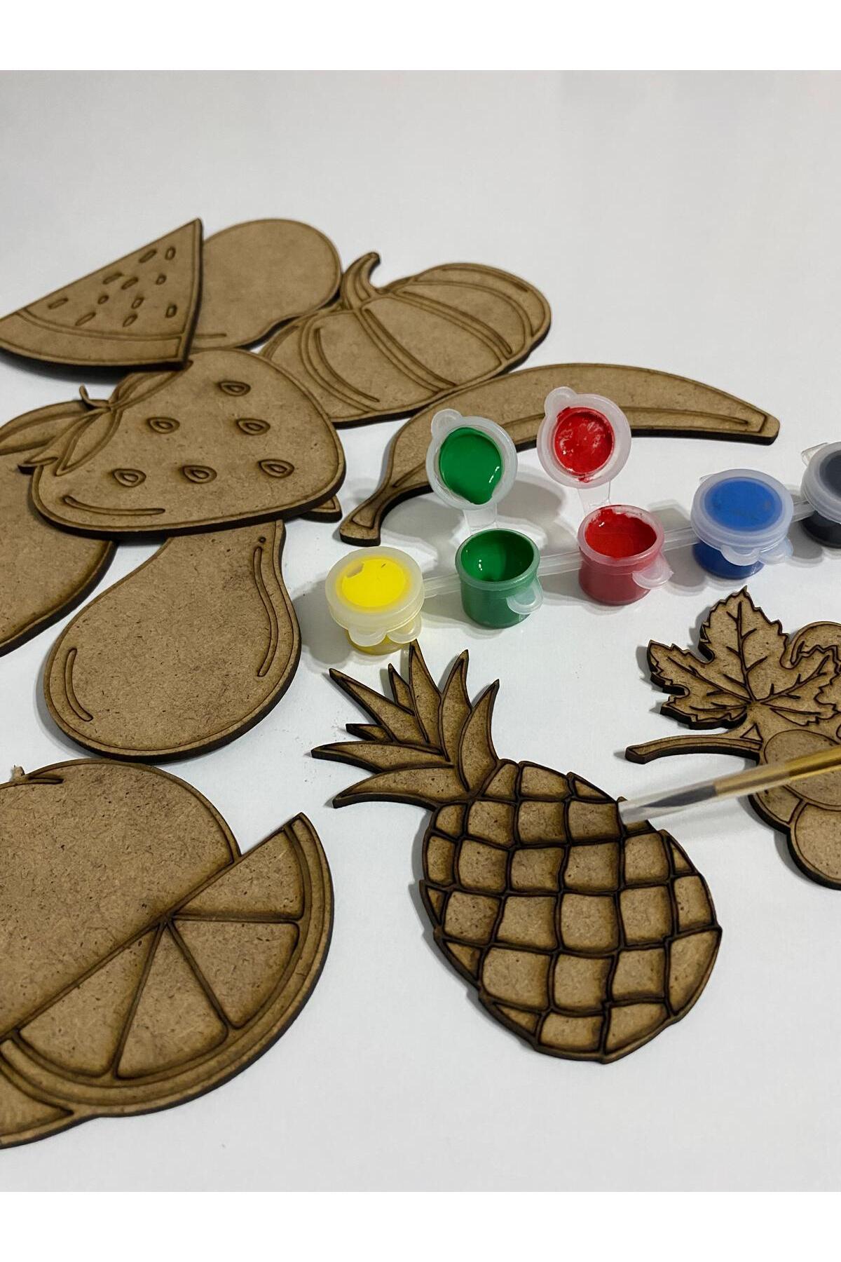 MODAT Ahşap Kendin Yap Meyveler Boyama Seti Eğitici Montessori Çocuk Gelişim Oyuncağı