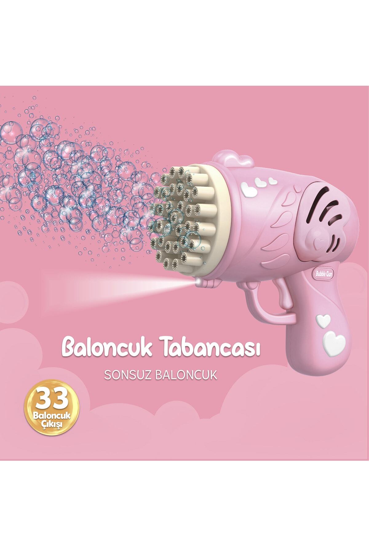 Mofy Baby 33 Kanal Işıklı Pilli Baloncuk Makinesi Baloncuk Tabancası Köpük Tabancası Bubble Gun Pembe
