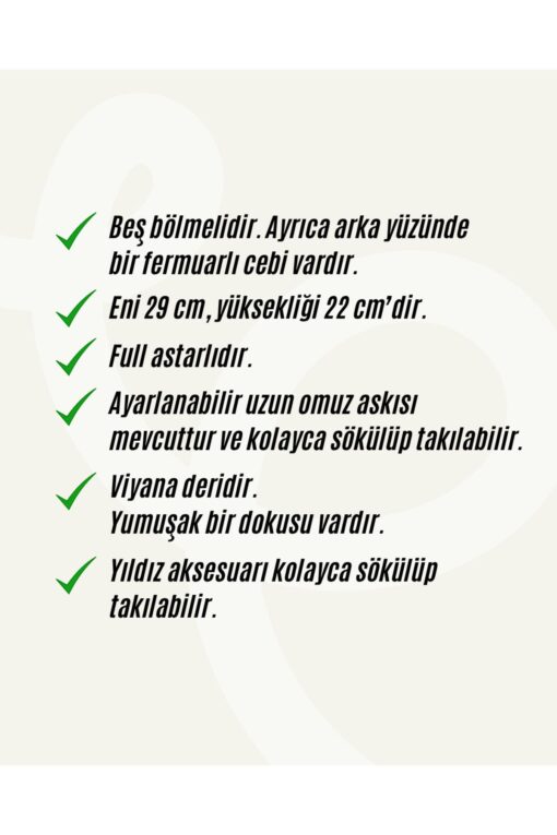 Hem günlük olarak hem de özel günlerinizde kullanabileceğiniz şık bir çantadır.