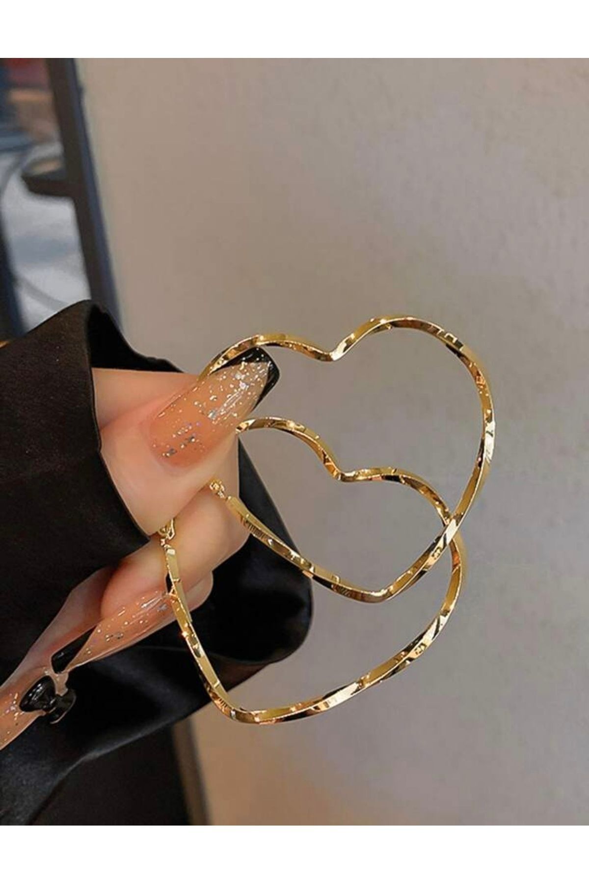 monalisatoka Kadın Gold Çember Büyük Boy Kalp Küpe