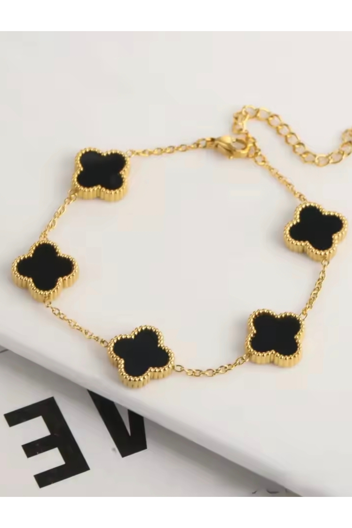 monalisatoka Kadın Gold Siyah Yonca Bileklik