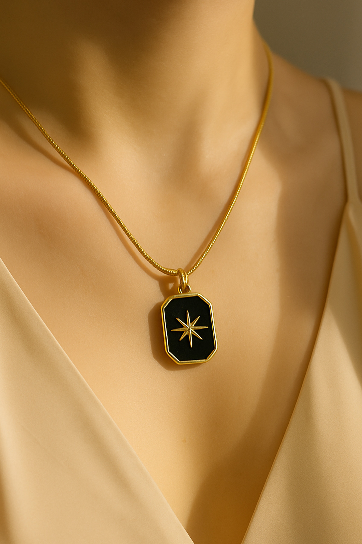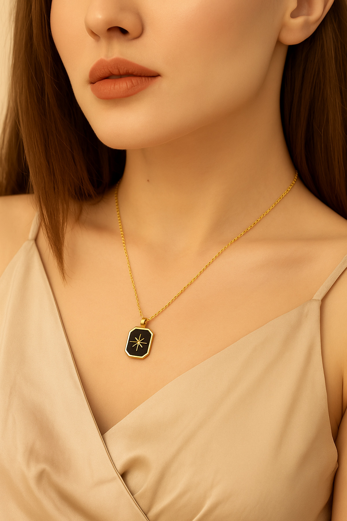 monalisatoka Kadın Kuzey Yıldızı Siyah Mineli Gold Kaplama Kutup Yıldızı Kolye