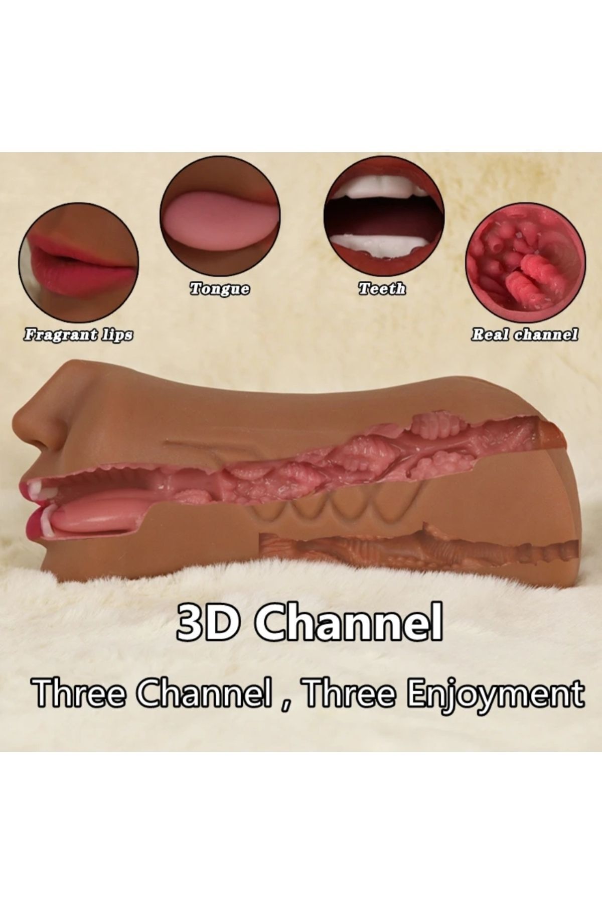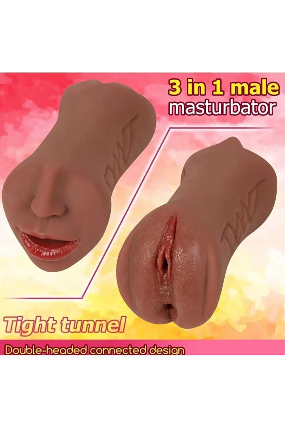 Monami 3 Girişli Oral Vajina Anal Esmer 20 Cm Gerçekçi Ağız Dil Ve Diş Yapısı Et Dokusunda Suni Mastürbatör