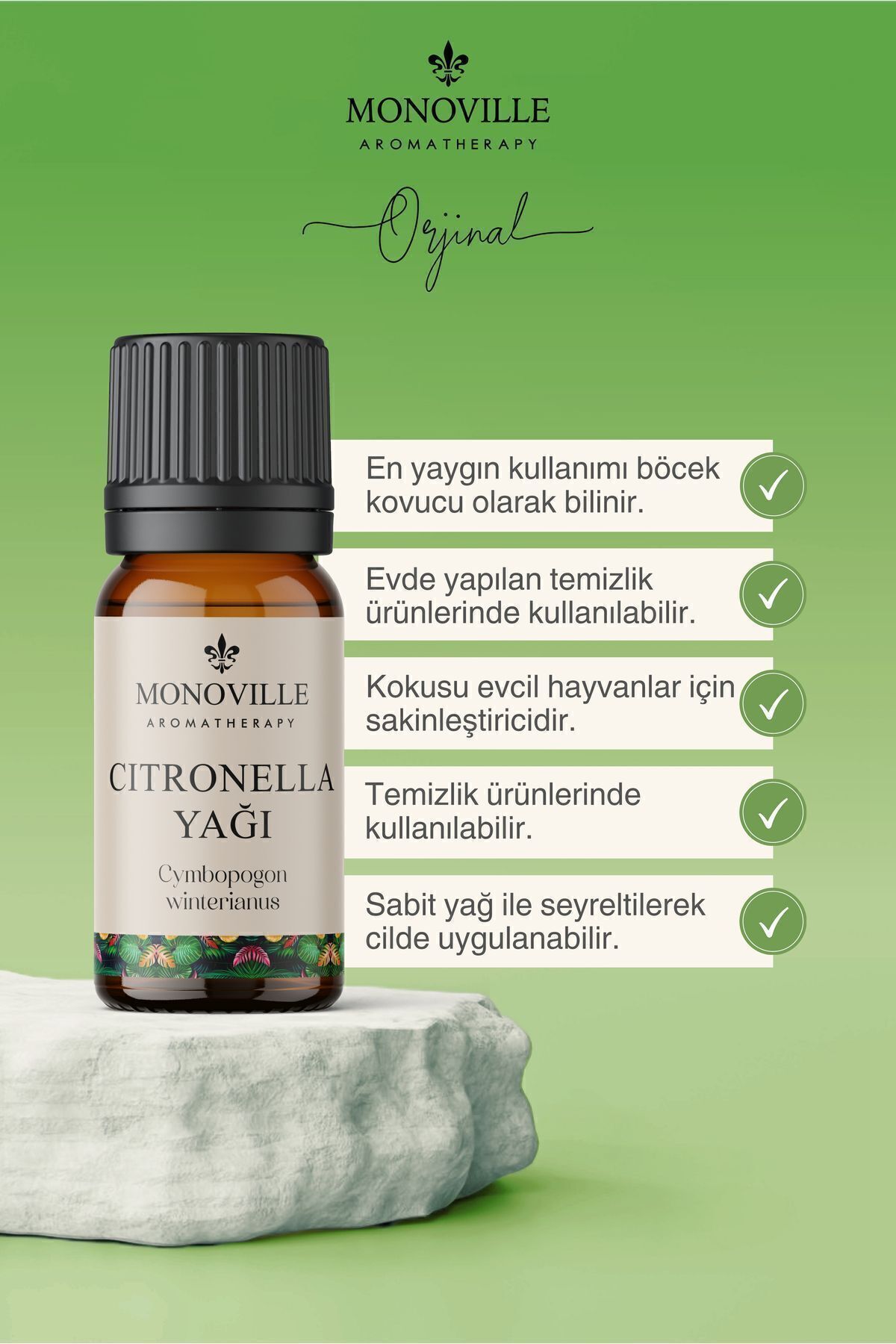 Monoville Citronella Uçucu Yağı 10 ml %100 Saf ve Doğal (Citronella Essential Oil)