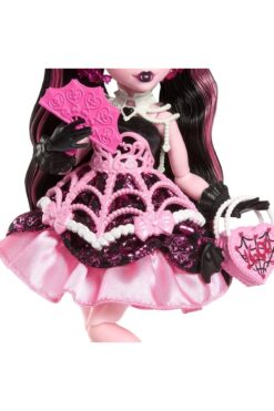 MONSTER HIGH ® DOĞUM GÜNÜ™ DRACULAURA™ Bebek Parti elbiseli ve bir elinde balonla JBG74