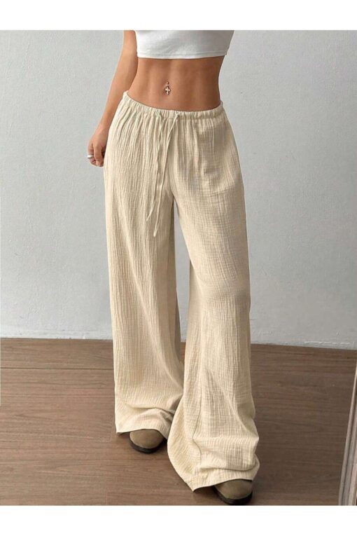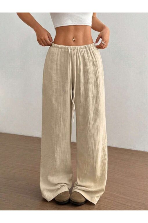 MOONBULL Kadın Bürümcük Kumaş Bel Bağlamalı Dokuma Geniş Paça Pantolon en ucuz fiyata kozmetikara.com sitemizden sipariş verebilirsiniz.