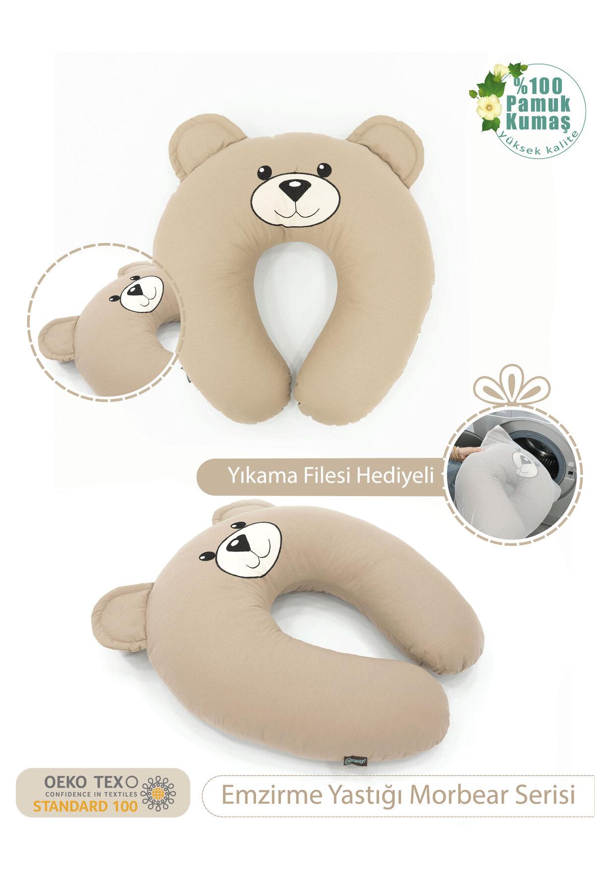 mordesign Emzirme Yastığı Bebek Destek Minderi Hamile Yastığı Pamuk Kumaş Morbear Serisi, Kapiçino