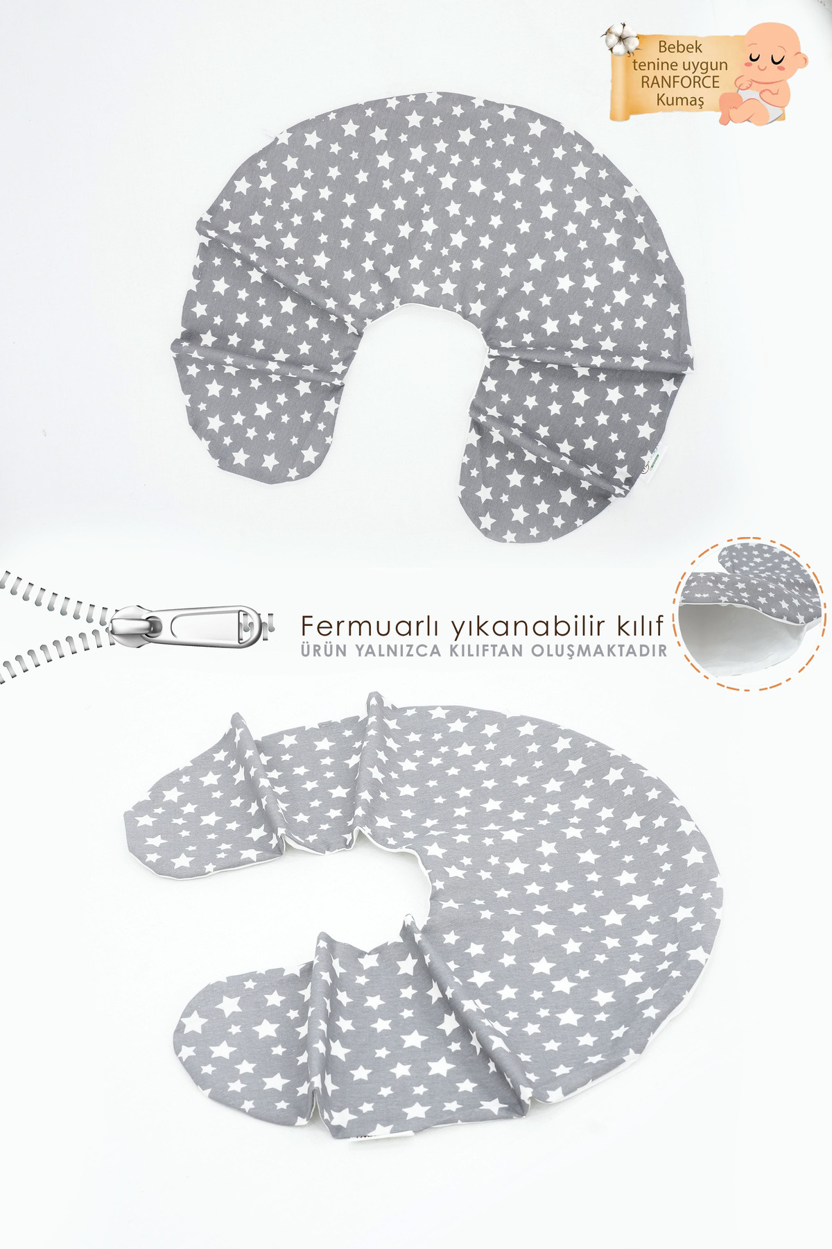 mordesign Kılıf, Çift Taraflı Emzirme Yastığı Kılıfı/bebek Destek Minderi Kılıfı,pamuklu Kumaş,stars Desen,gri