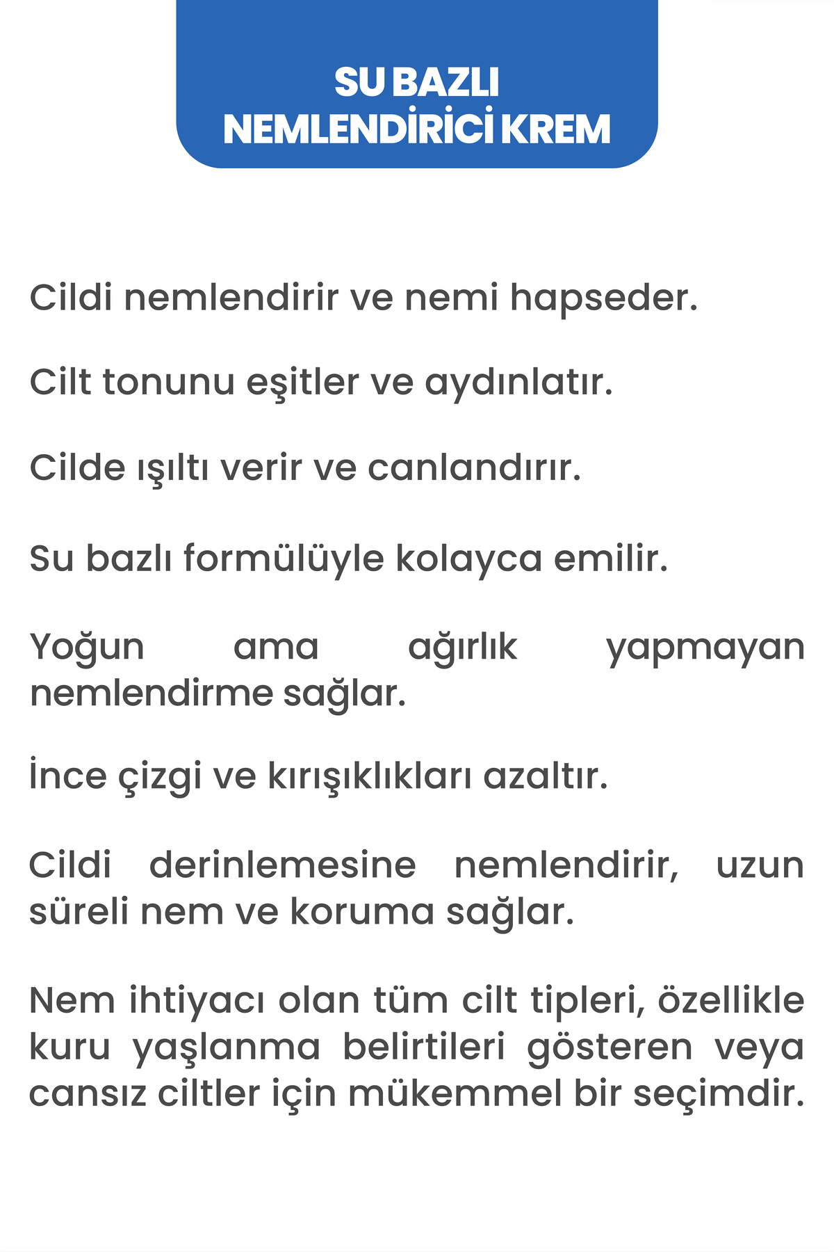 MOST Cosmetic Su Bazlı Yoğun Nemlendirici, Cilt Tonu Eşitleyici Yüz Kremi 50 ml