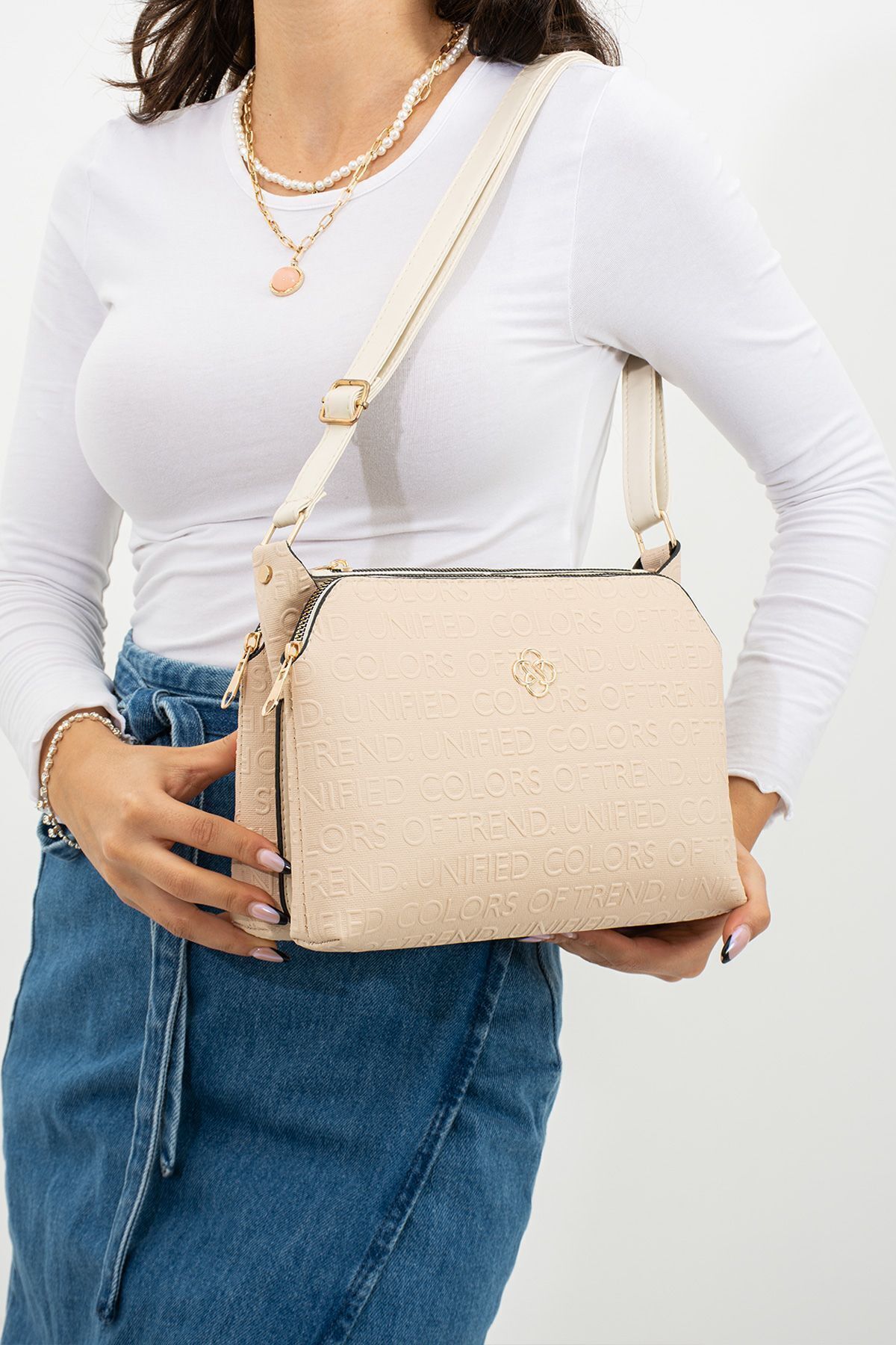 mugalas Bej Yazı Baskılı Üç Bölmeli Su Itici Omuz Çapraz Askılı Kaliteli Çanta en ucuz fiyata kozmetikara.com sitemizden sipariş verebilirsiniz.