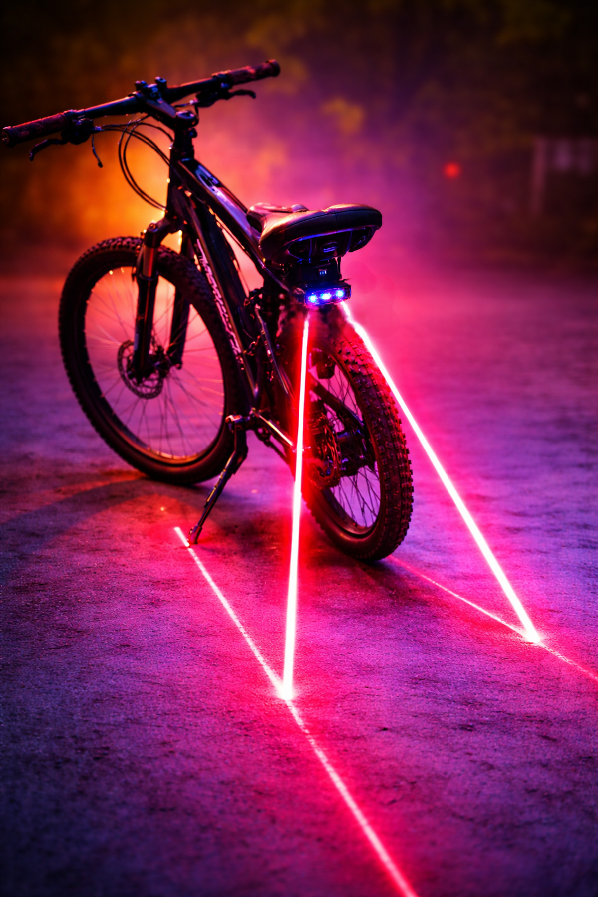MultiZone Lazerli Bisiklet Arka Işık | LED Stop Lambası | Güvenlik Şeritli Lazer Işık | Pilli Bisiklet Lambası