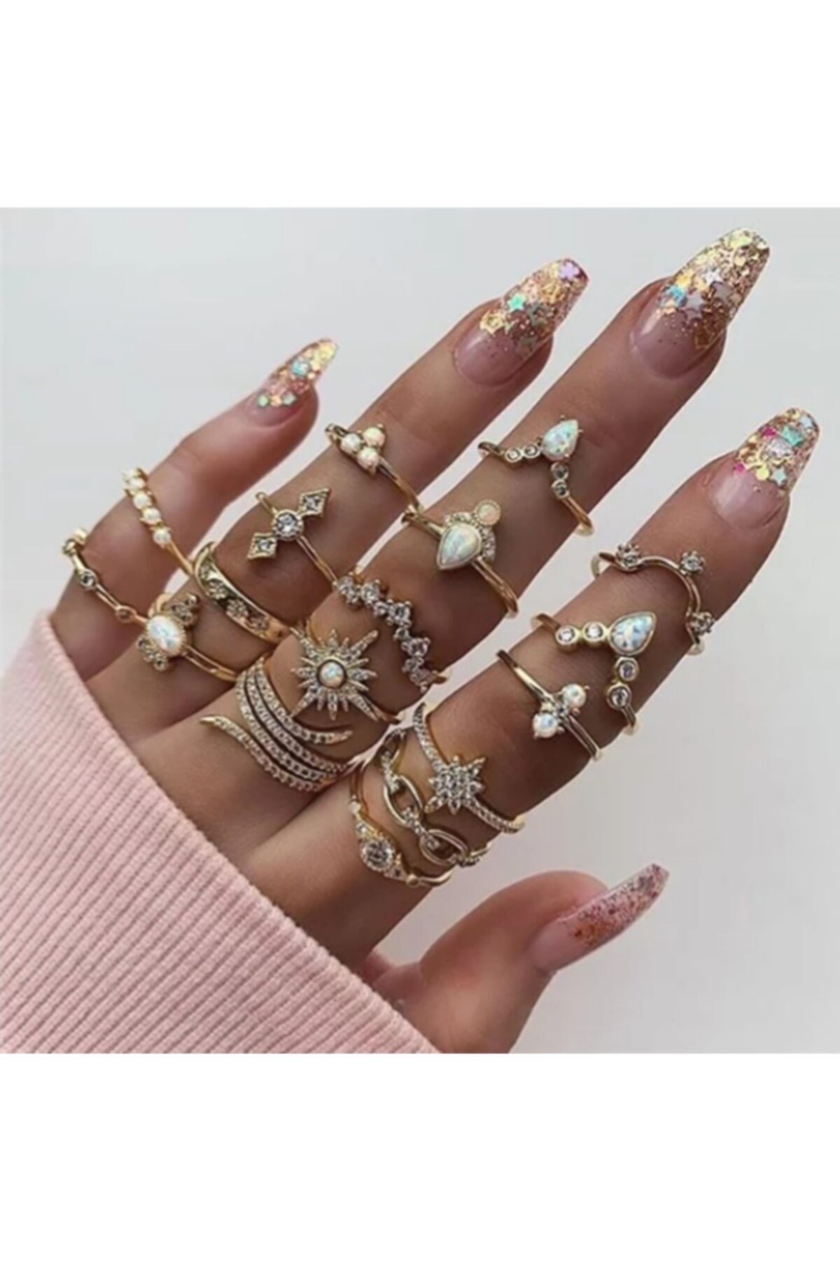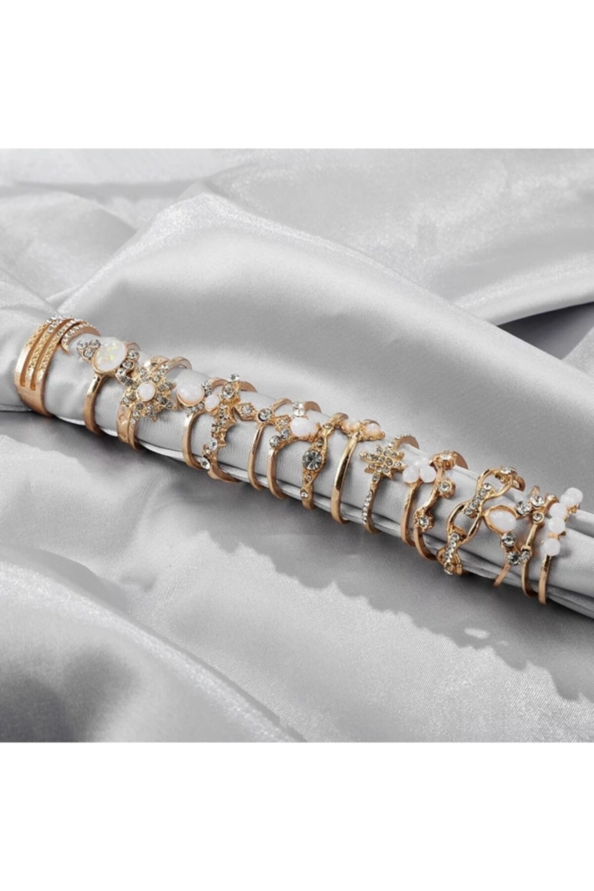 MURASSA BUTİK Kadın Altın Renk 17’li Antik Bohem Yüzük Set