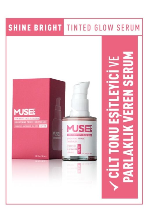 MuseLab Shine Bright Tinted Glow Serum I Cilt Aydınlatıcı I Parlatıcı I Nemlendirici Serum SPF15 en ucuz fiyata kozmetikara.com sitemizden sipariş verebilirsiniz.