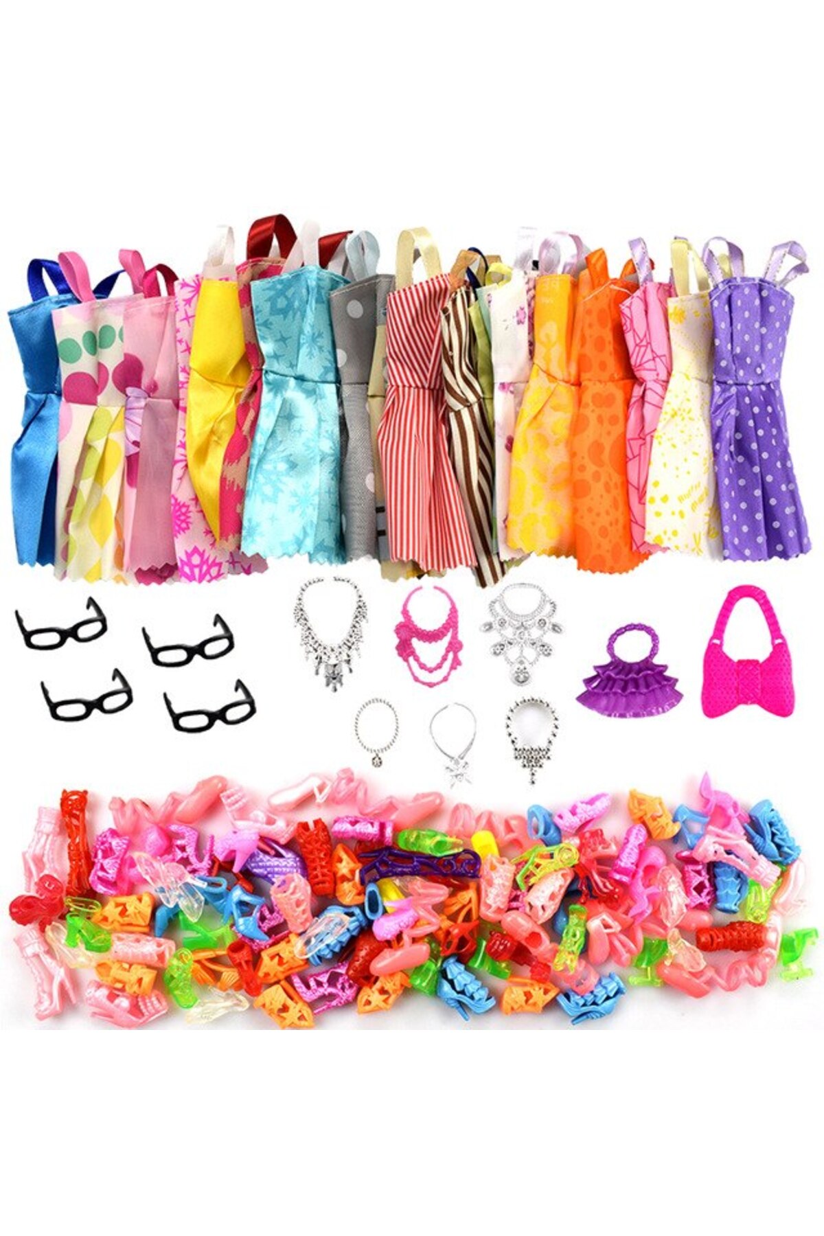 Müstesna Barbi Bebekler Için Aksesuar Kıyafet Ayakkabı Seti Barbie Sindy Elsa Anna 32 Parça