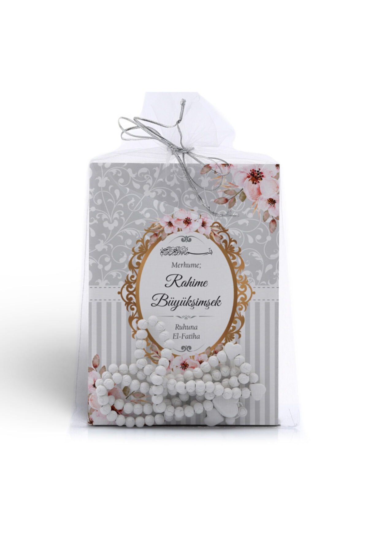 Mutluluk Atölyem Gri Pembe Çiçek Motifli Hediyelik Tesbihli Yasin Cüzü Kitabı Mevlüt Seti – 10’lu Paket