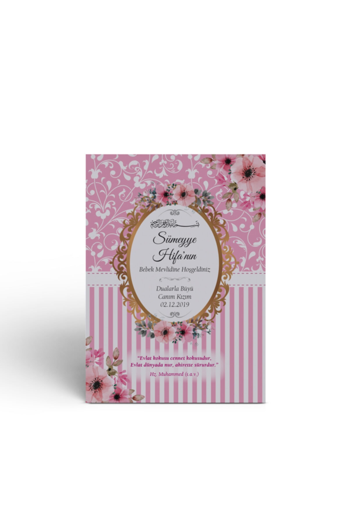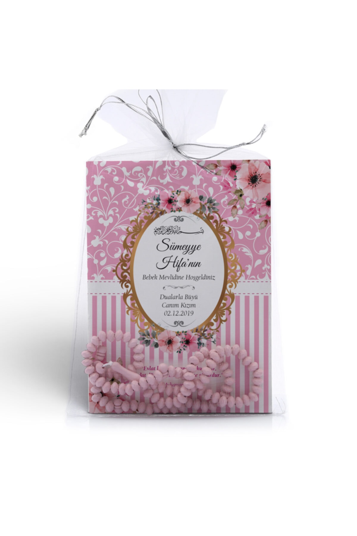 Mutluluk Atölyem Kız Bebek Için Pembe Çiçek Motifli Hediyelik Tesbihli Yasin Cüzü Kitabı Mevlüt Seti – 10’lu Paket