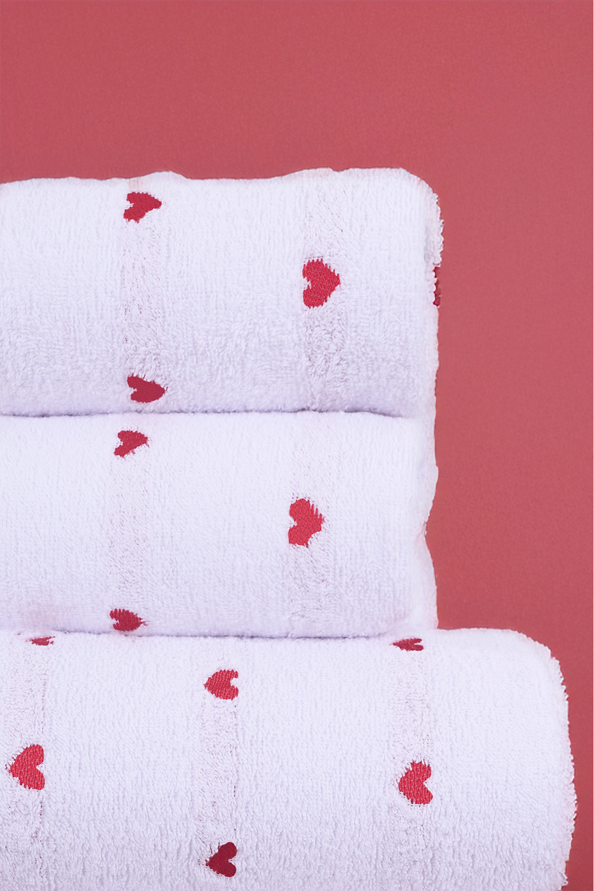 My Catherine 4’lü Banyo Havlu Seti Kalpli – Kalp Desenli Hamam Takımı