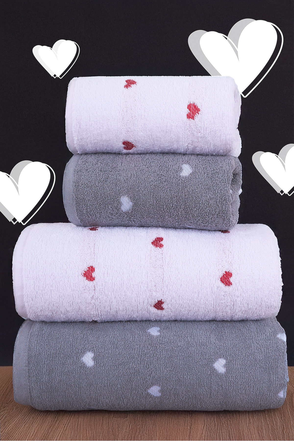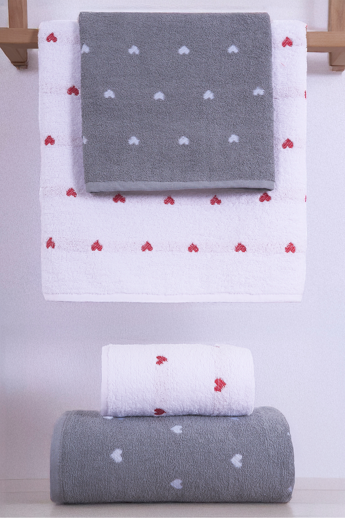 My Catherine 4’lü Banyo Havlu Seti Kalpli – Kalp Desenli Hamam Takımı