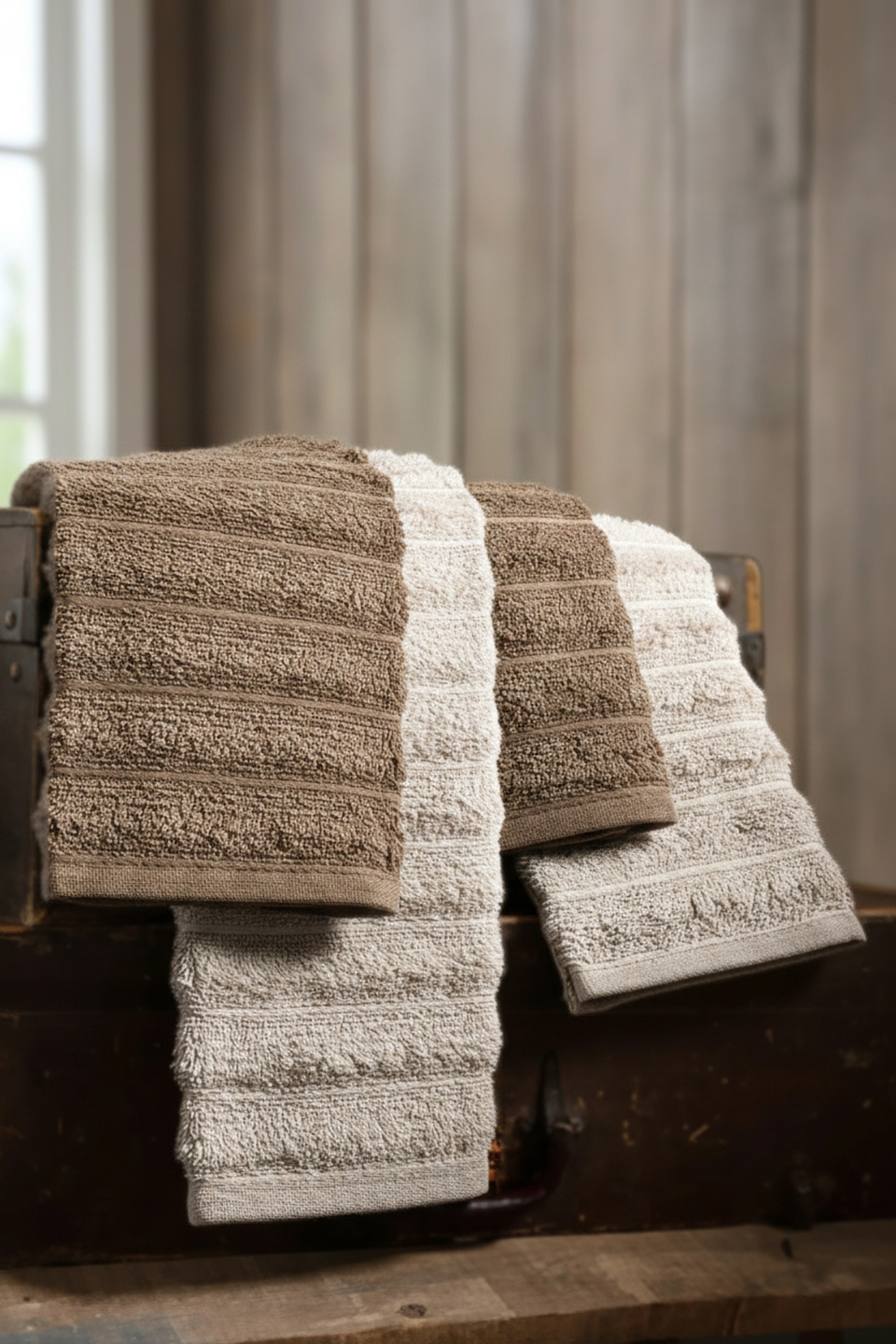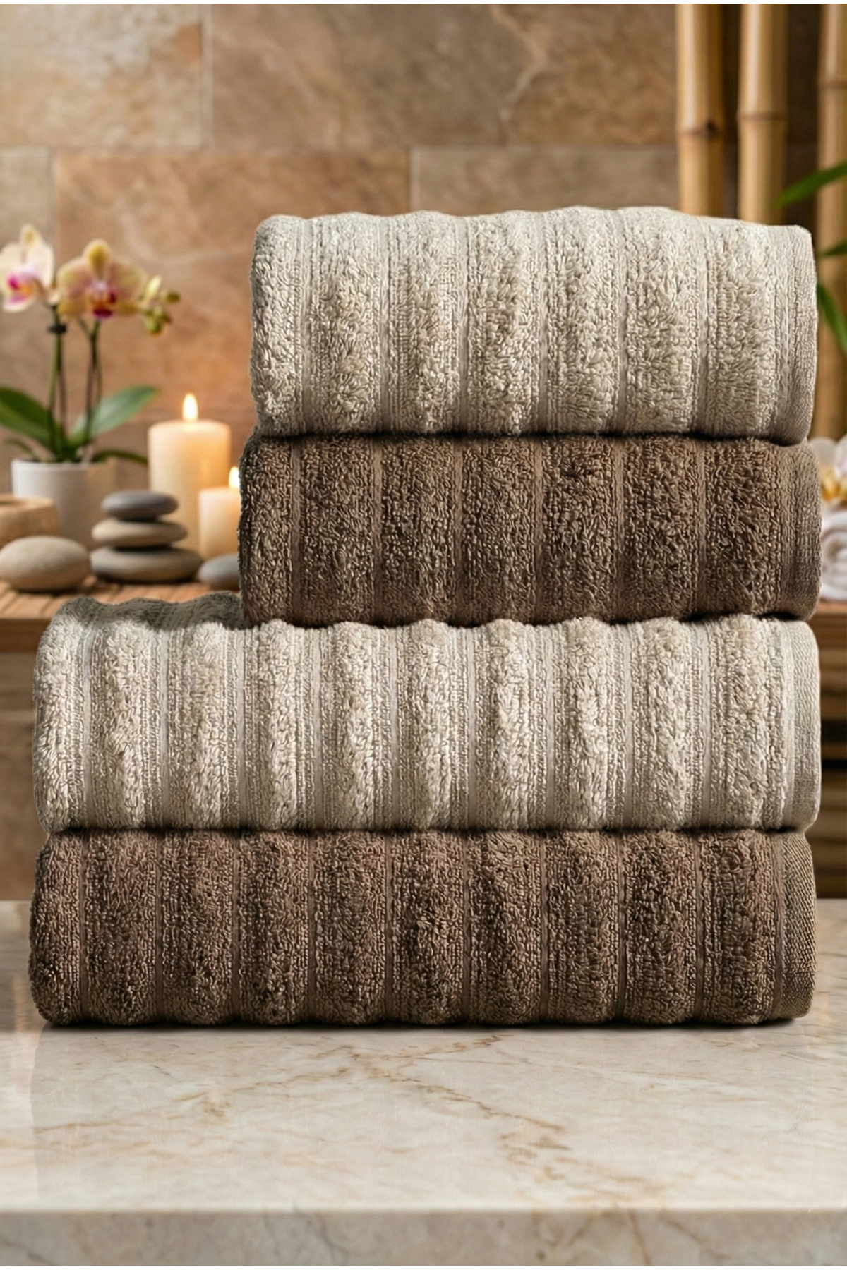 My Catherine Dalgalı 4’lü Havlu Seti – %100 Pamuk (2 Adet 70×140-2 Adet 50×90) | Modern ve Lüks Seri, Hamam Seti