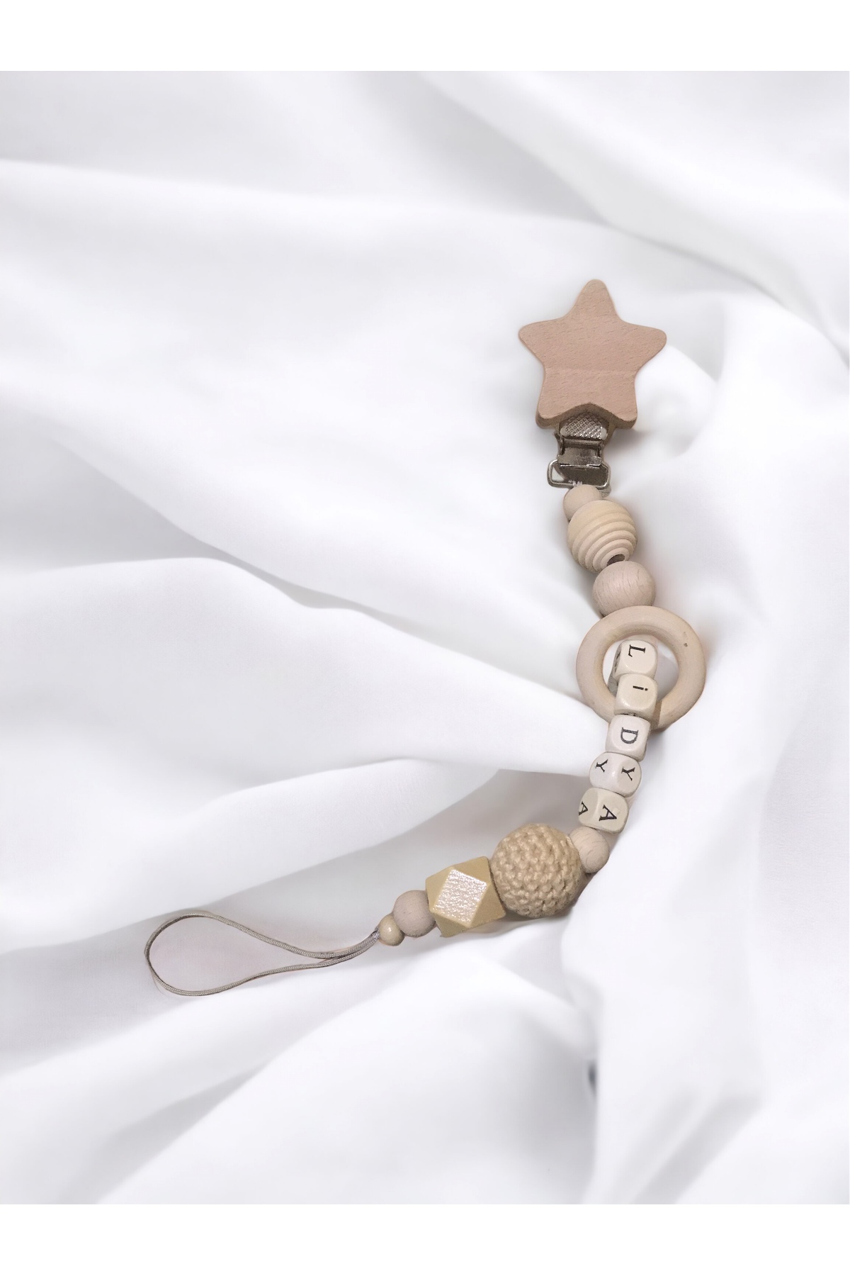 My Kids Room Doğal Ahşap Emzik Zinciri – Isimli Emzik Askısı Ahşap Emzik Zinciri Emzik Tutucu