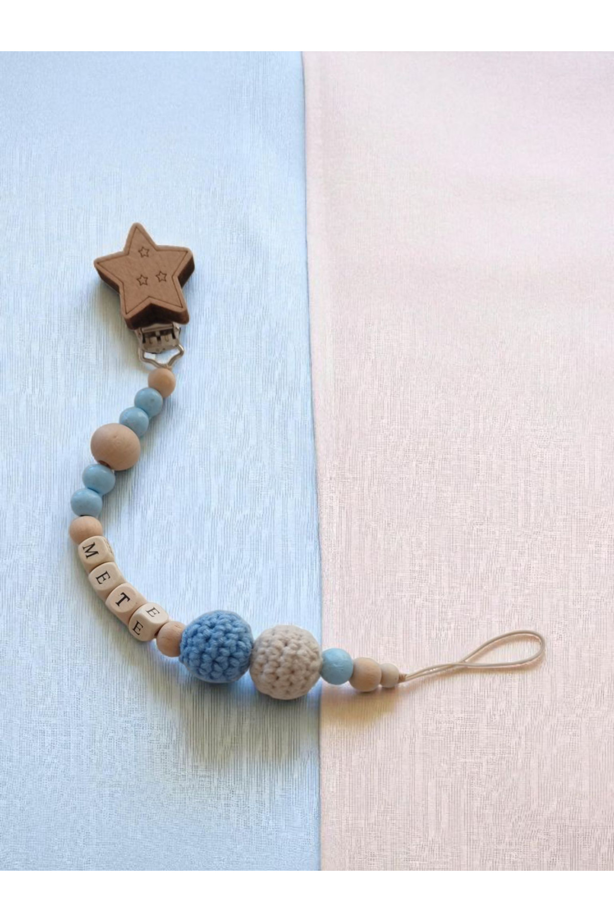 My Kids Room Doğal Ahşap Emzik Zinciri – Isimli Emzik Askısı Ahşap Emzik Zinciri Emzik Tutucu