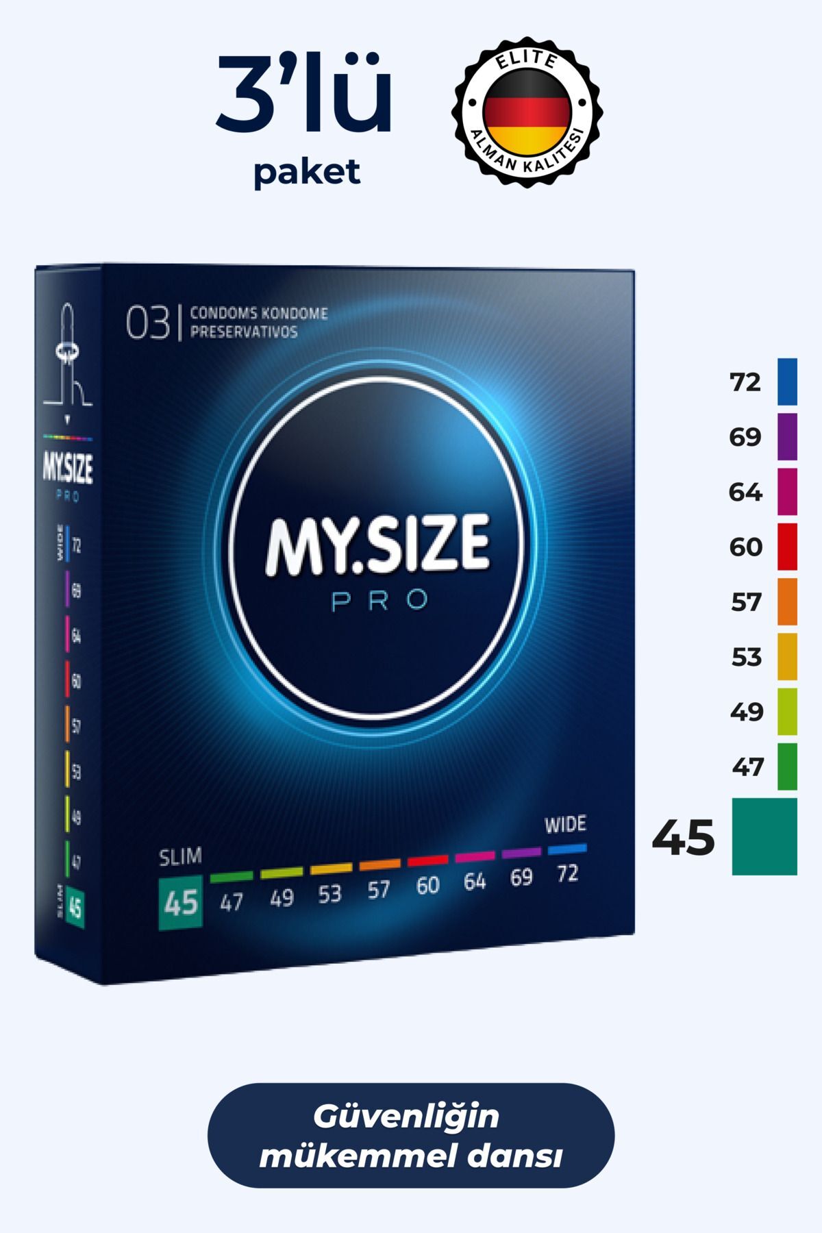 Mysize PRO Prezervatif - Alman Kalitesi - Ultra Ince - 3'lü - 45 Beden ürününü en uygun fiyata kozmetikara.com sitemizden sipariş verebilirsiniz.