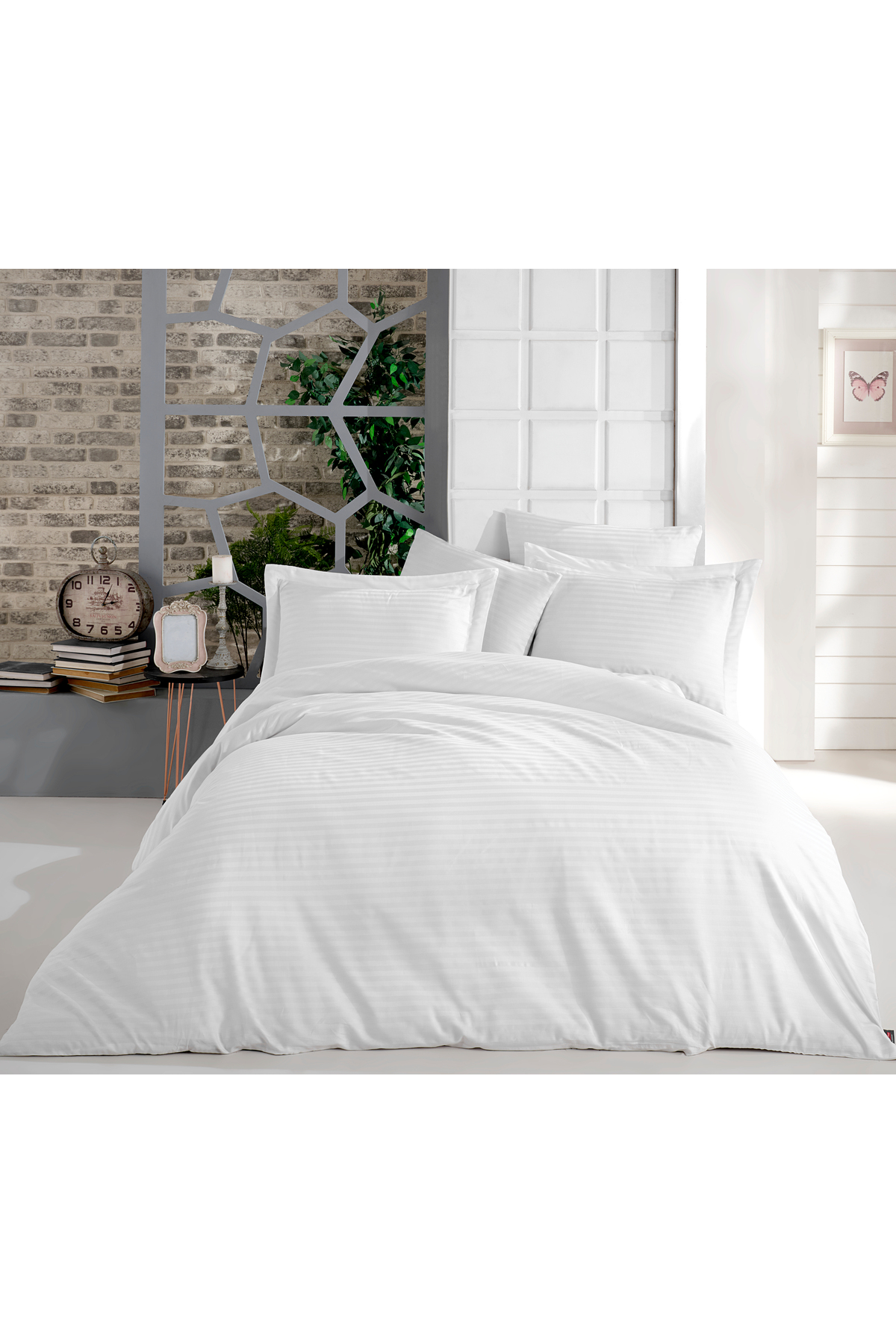 MyStory Home Lastikli Çarşaflı Tek Kişilik Nevresim Takımı Saten Beyaz