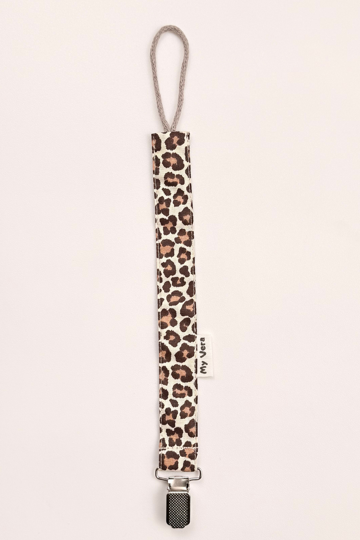 MyVera Leopar Emzik Askısı – Kumaş Pamuk Bağcıklı Emzik Zinciri – Emzik Tutacağı