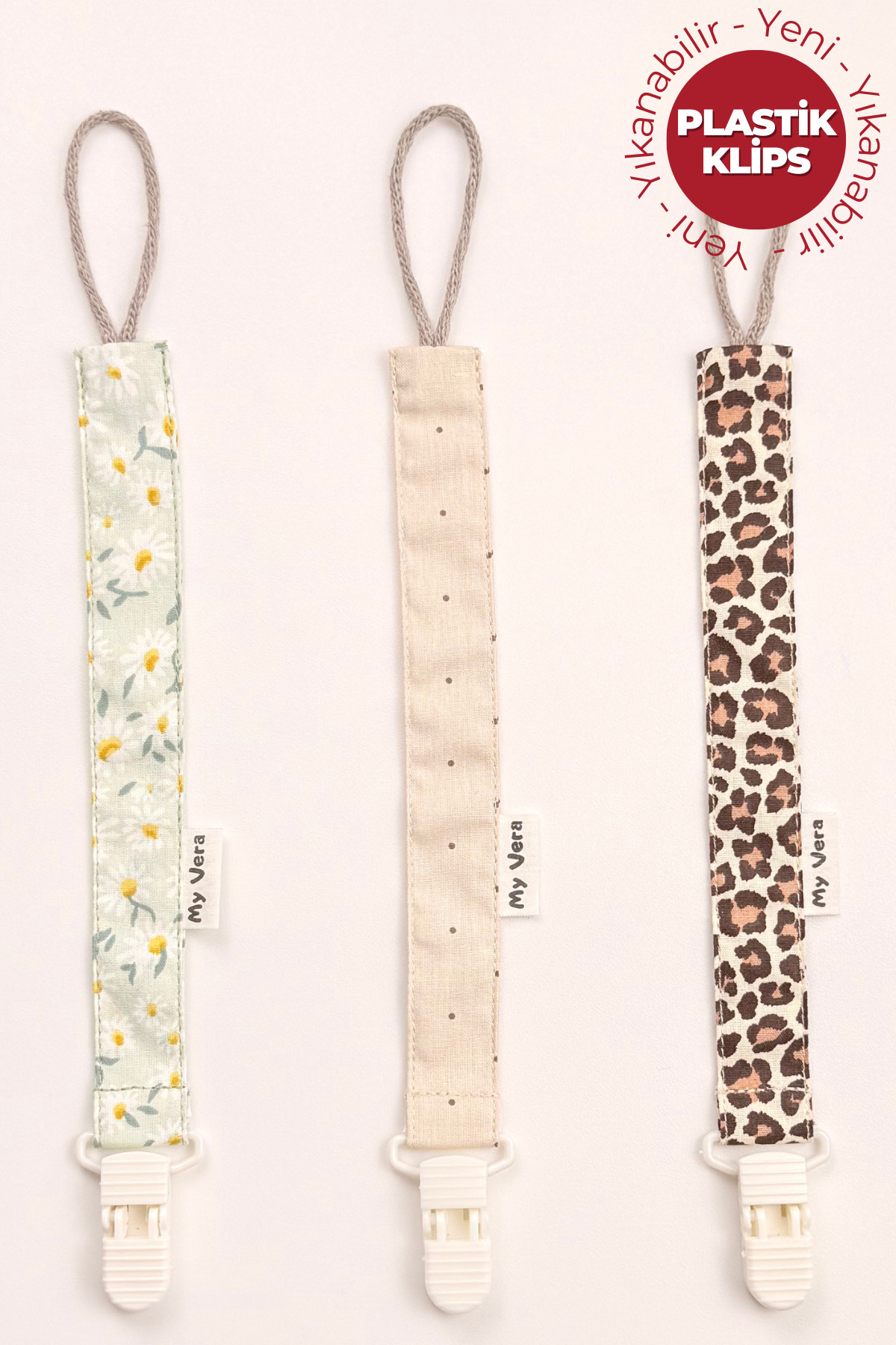 MyVera Yeşil Papatya – Vizon Puantiye – Leopar – Plastik Klipsli Emzik Askısı Seti 3’lü Emzik Zinciri Seti