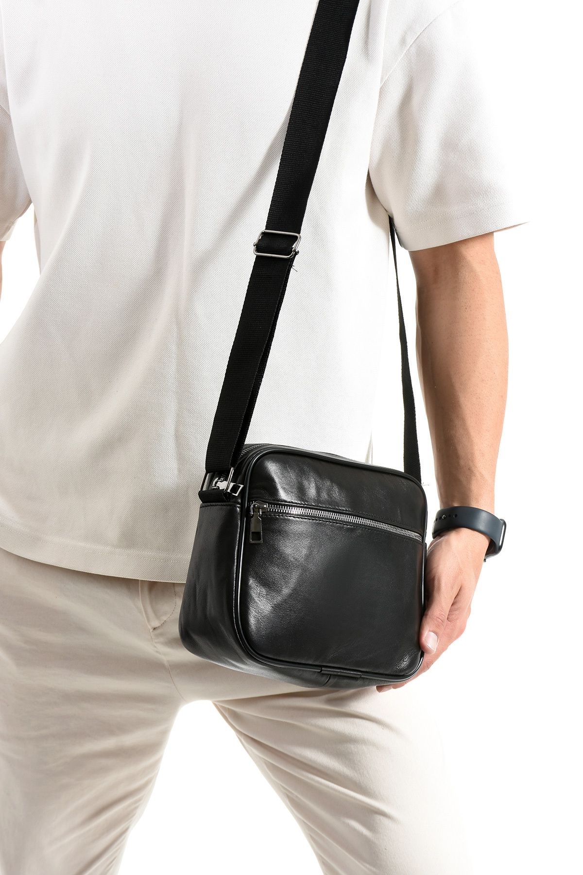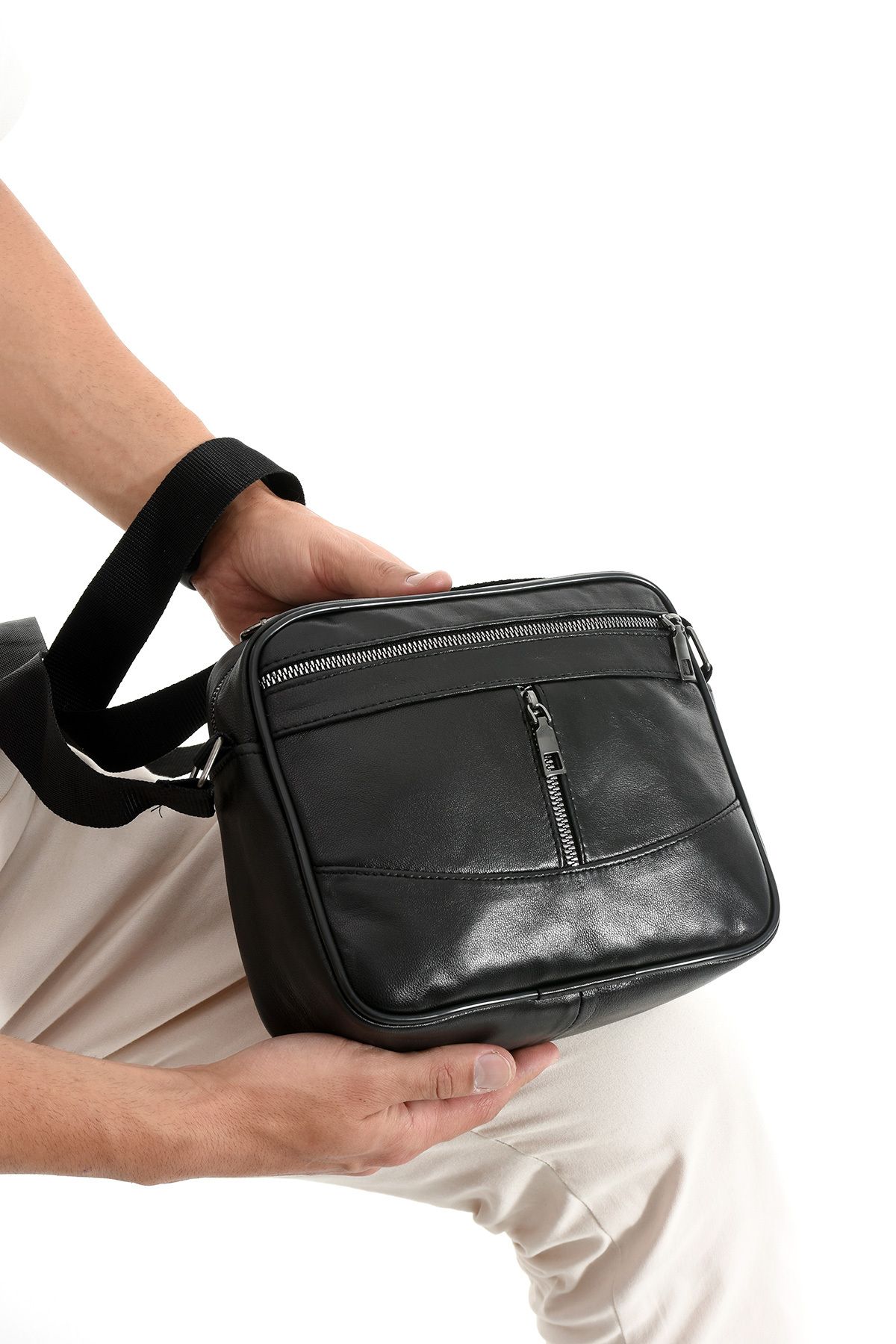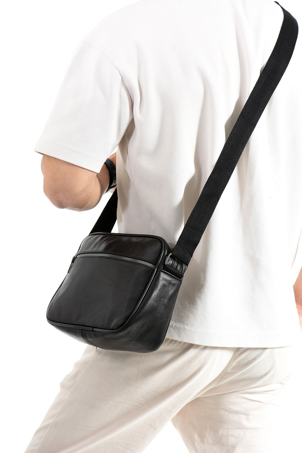 NahitaTyana Hakiki Deri Erkek Yatay Omuz Çantası, Çapraz Çanta, Çıkarılabilir Ayarlanır Askılı, Siyah Renk
