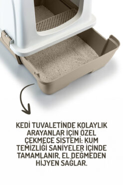 Nandy Kids Büyük Boy Çekmeceli Kedi Tuvaleti – Kapalı, Kolay Temizlik, Koku Önleyici Filtreli