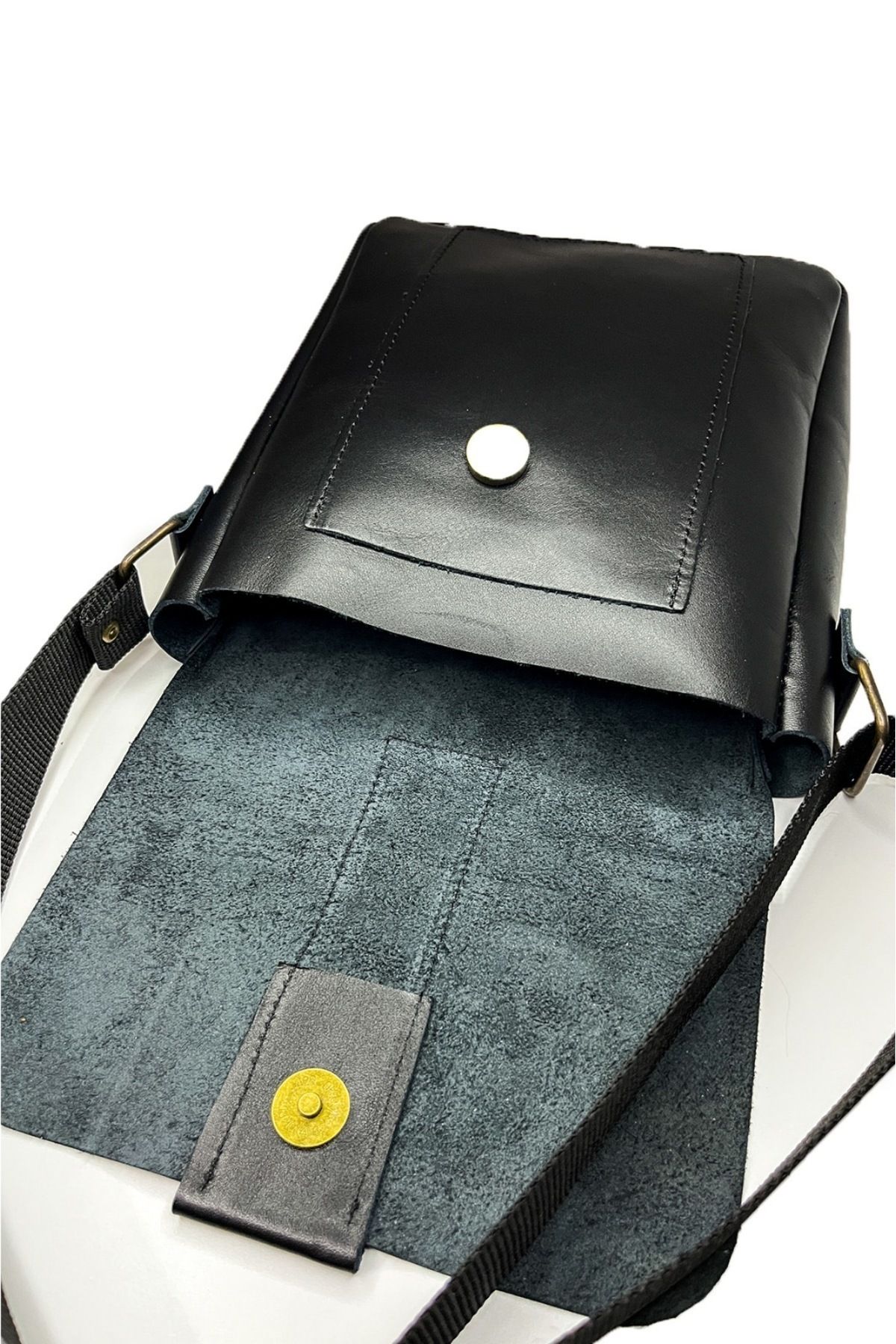 Güçlü ve zarif bir stil arayanlar için siyah deri postacı çantası, şıklık ve pratikliği bir arada sunuyor.