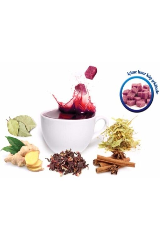 ıhlamur(çiçek), ayva yaprağı (yaprak), zencefil(kök), tarçın(kabuk), karanfil(çiçek tomurcuğu), hibisküs (nar çiçeği) , doğal kırmızı pancar kökü tozu (rizom), pancar şekeri , su ortalama içerik 100 g küp enerji kcal/kj 1667/392 protein g <0,7 karbonhidrat g 97,5 yağ g